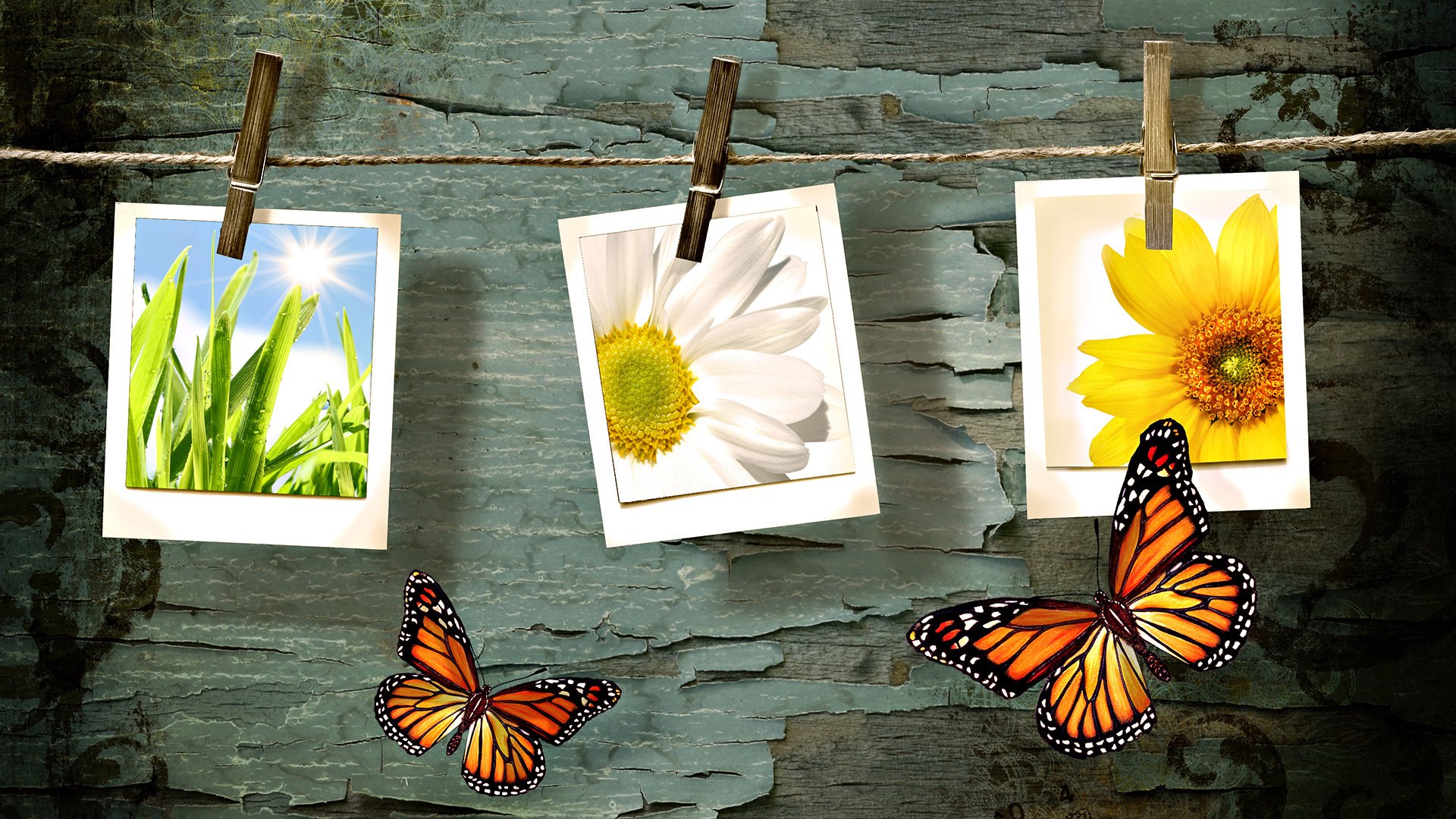 Photos de fleurs et d'herbe sur une corde avec des signesPhotos de fleurs et d'herbe sur une corde avec des signes