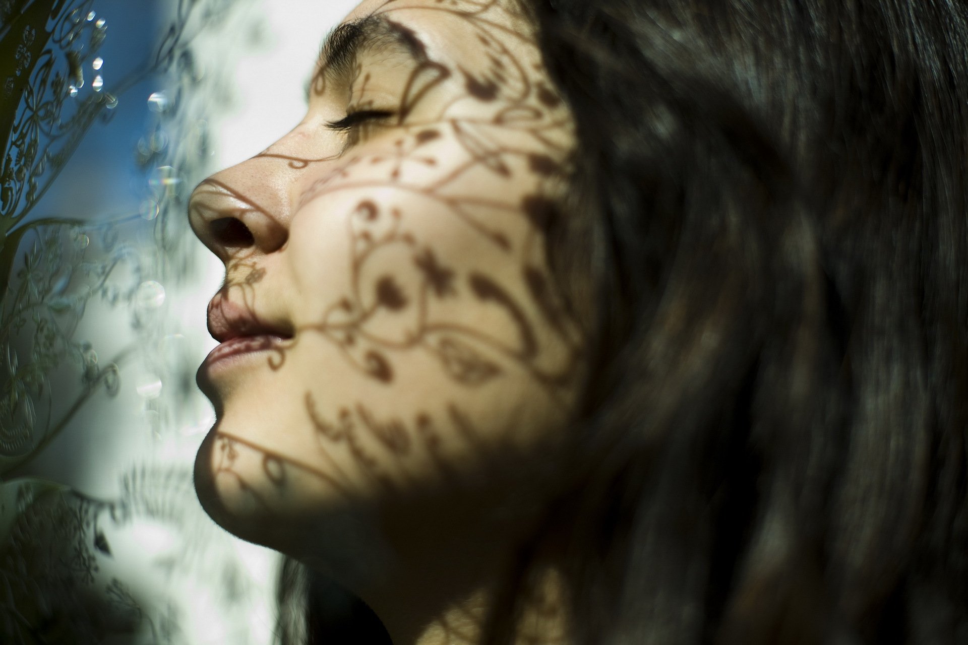 Portrait en noir et blanc d'une blonde avec de beaux yeux