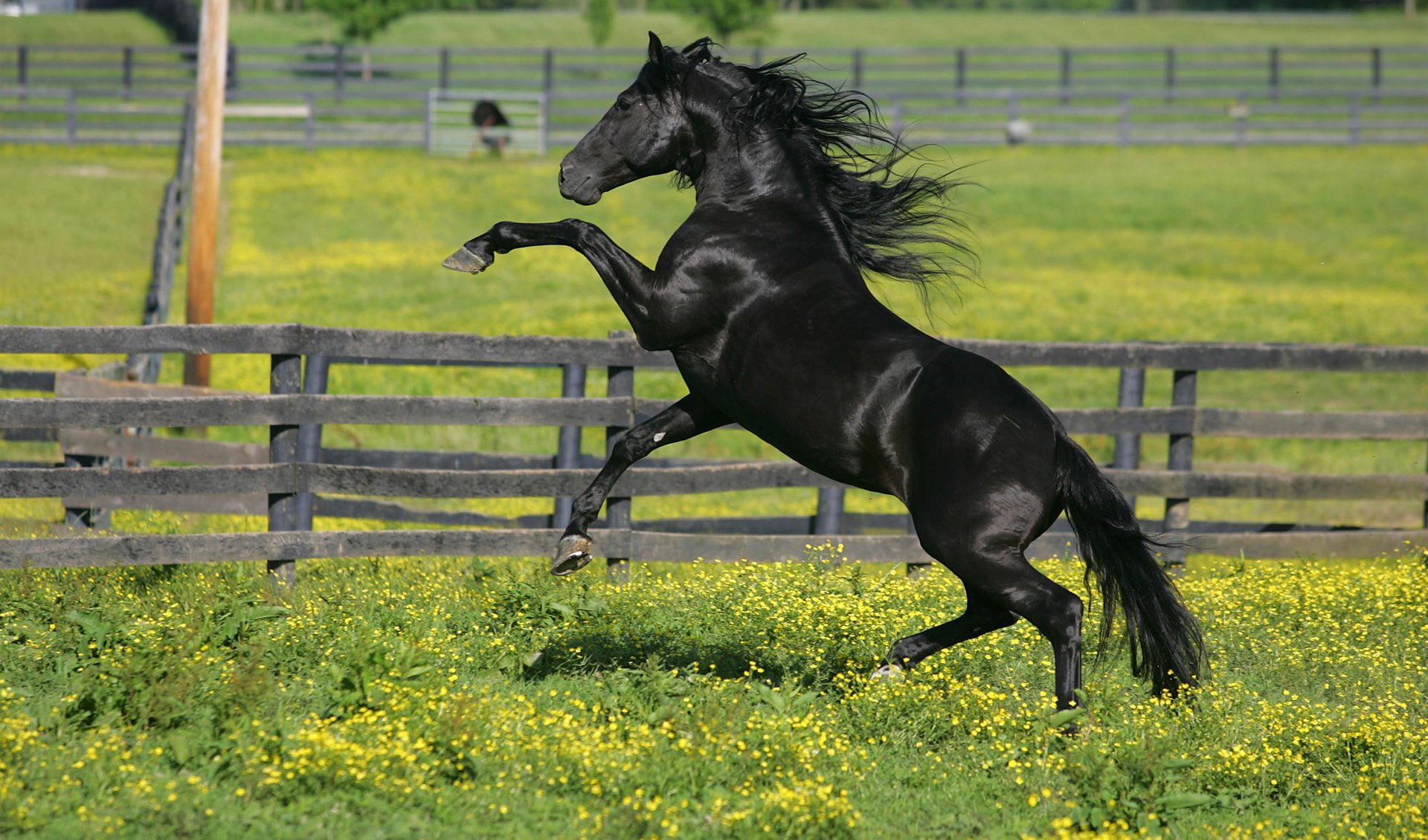 Le cheval se leva sur les trous, les éclaboussures d'eauLe cheval se leva sur les trous, les éclaboussures d'eau