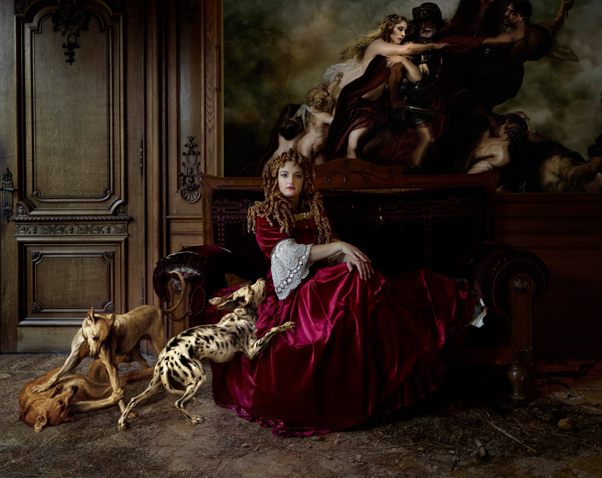 Fille avec des chiens sur le fond de l'image