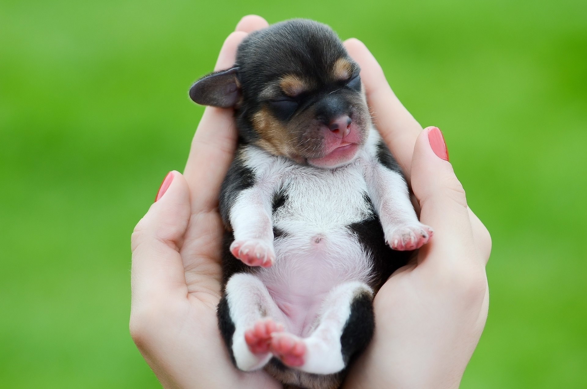 Chiot léger avec museau noir sur fond de feuillage vertChiot léger avec museau noir sur fond de feuillage vert