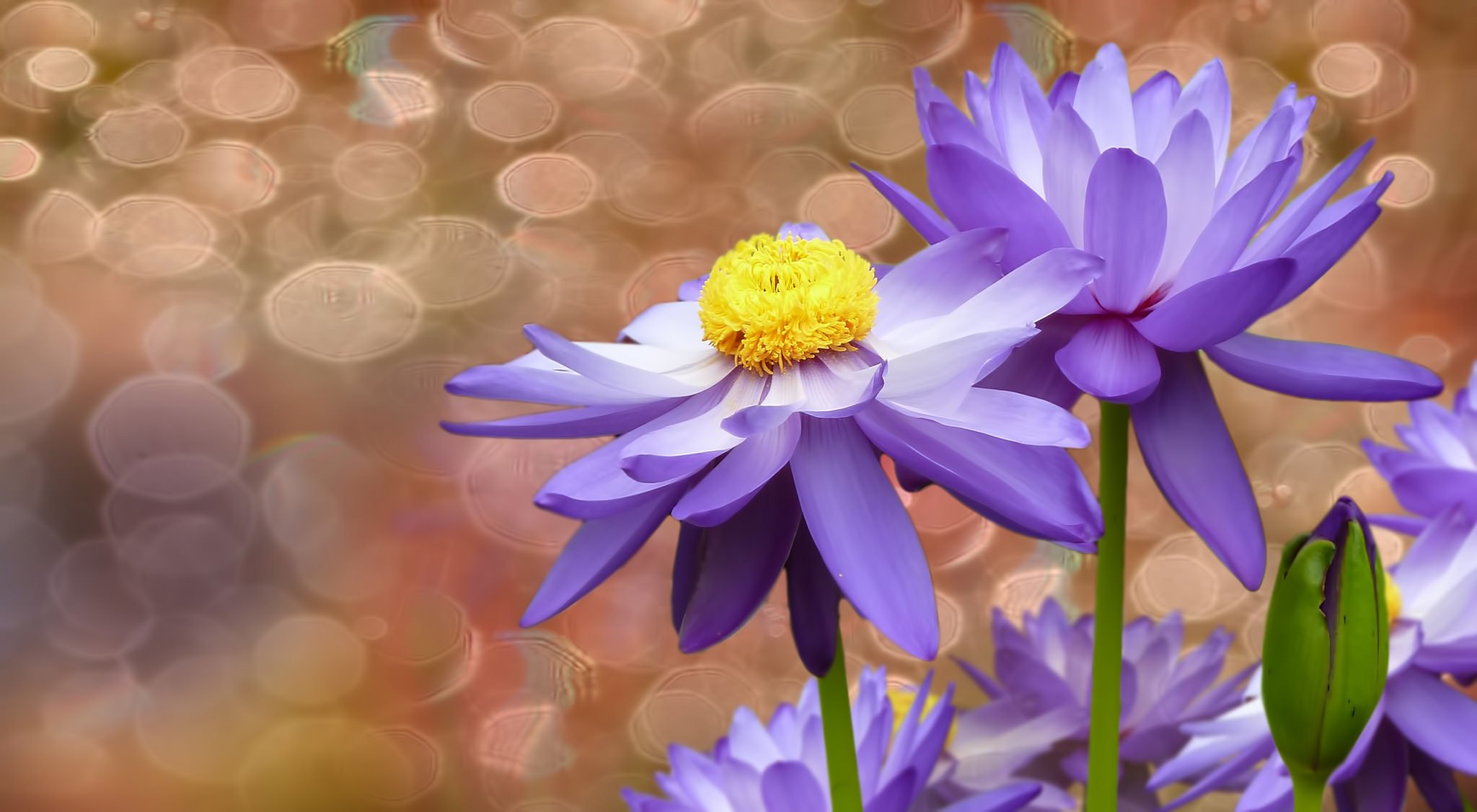 Violet arbre au milieu de parterres de fleurs avec de la verdure
