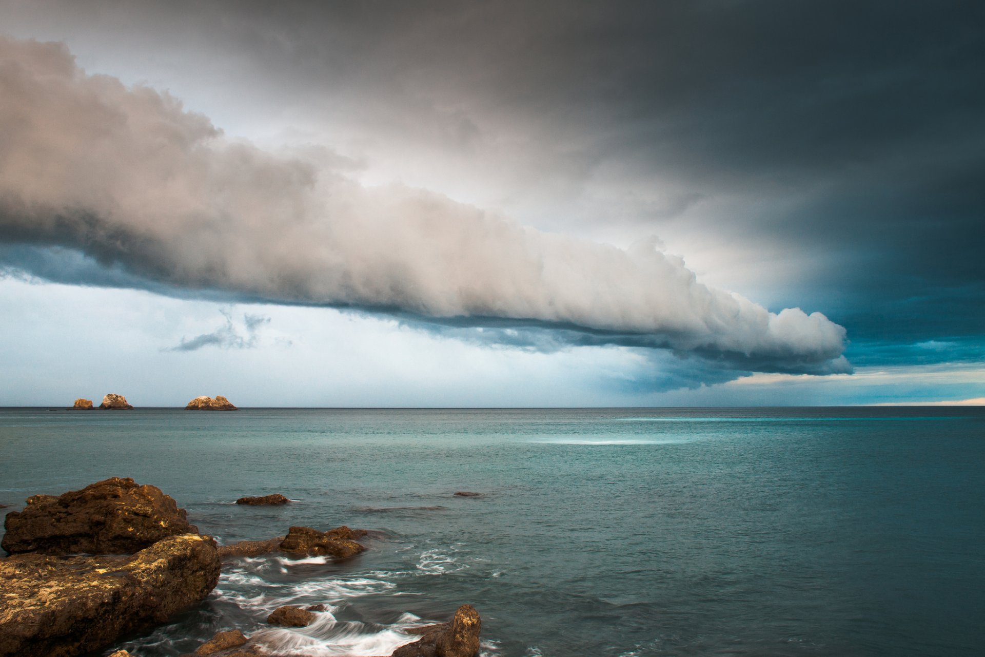 Avion de passagers à l'aéroport sur fond de ciel orageuxAvion de passagers à l'aéroport sur fond de ciel orageux