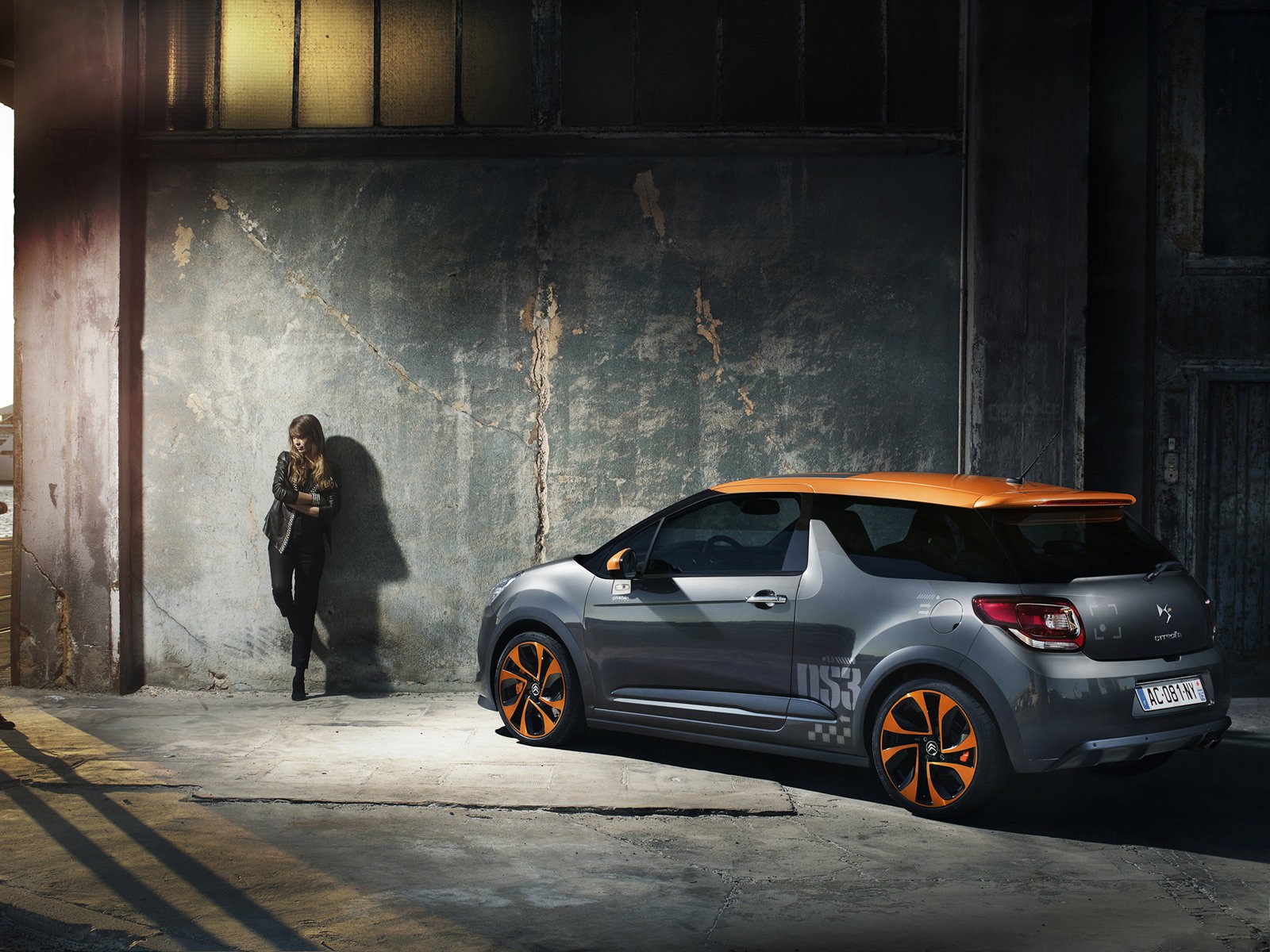 Hiver, forêt enneigée et Citroën ds3 sur la route