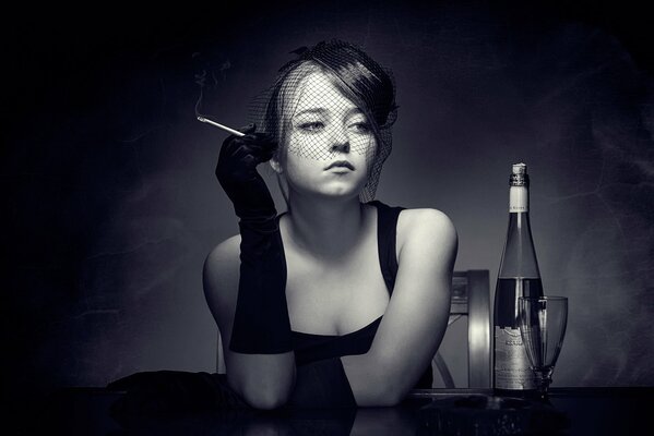 Fille sombre dans un voile noir avec un crâne dans les mains