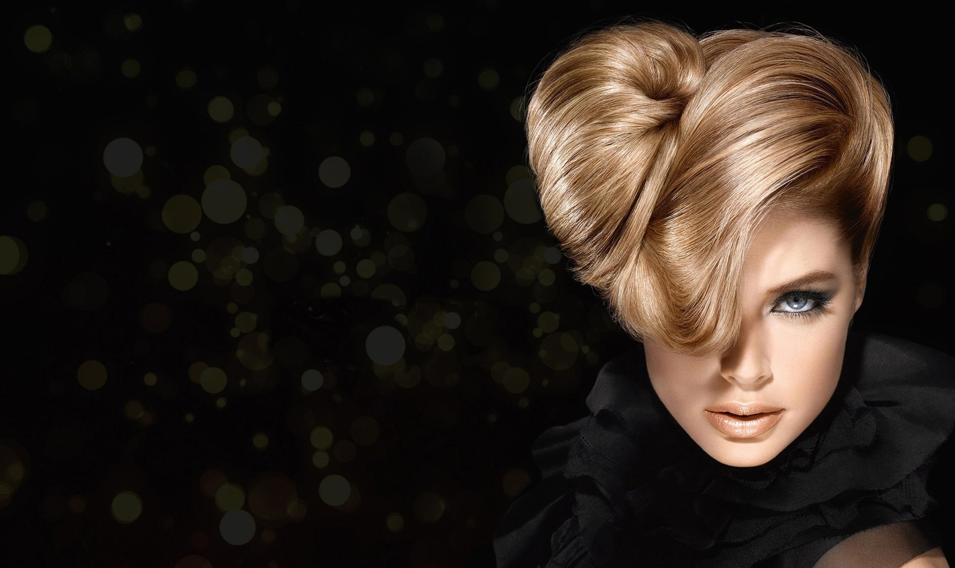 Fille avec une coiffure inhabituelle sur fond noirFille avec une coiffure inhabituelle sur fond noir