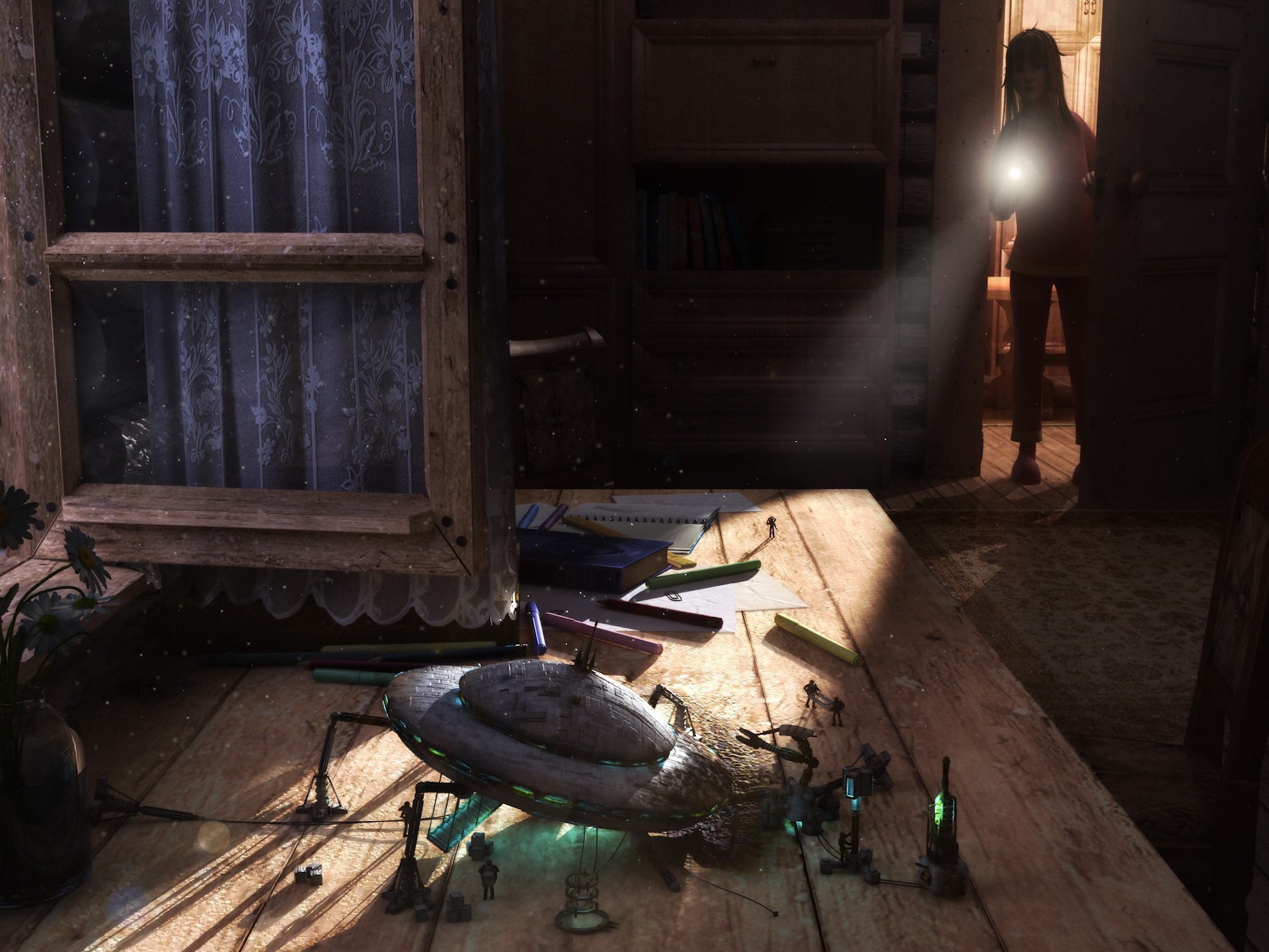 Un enfant sous l'eau près d'un énorme œil d'une créature incompréhensibleUn enfant sous l'eau près d'un énorme œil d'une créature incompréhensible