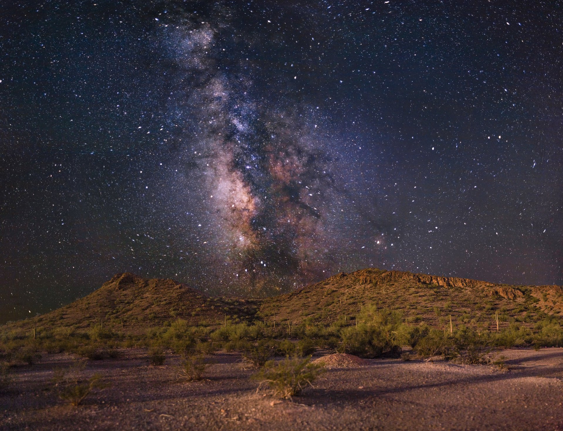 La voie lactée est visible de derrière une colline couverte d'arbresLa voie lactée est visible de derrière une colline couverte d'arbres