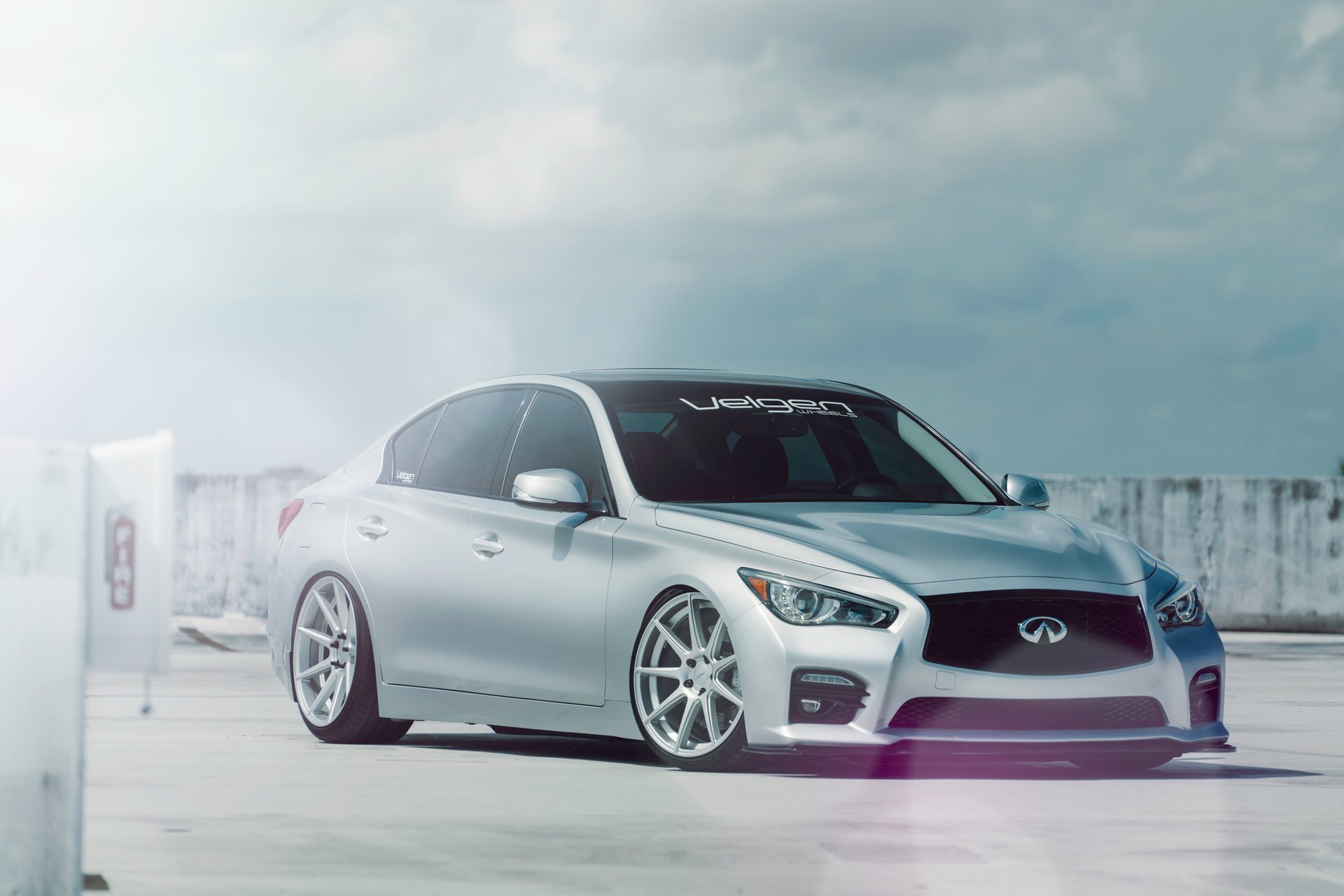 Mercedes argent sur fond de bâtiment urbain
