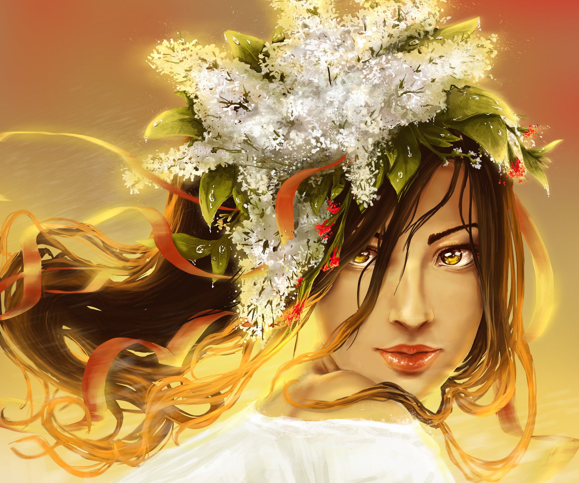 Image d'une fille avec une Couronne de lilas sur la tête