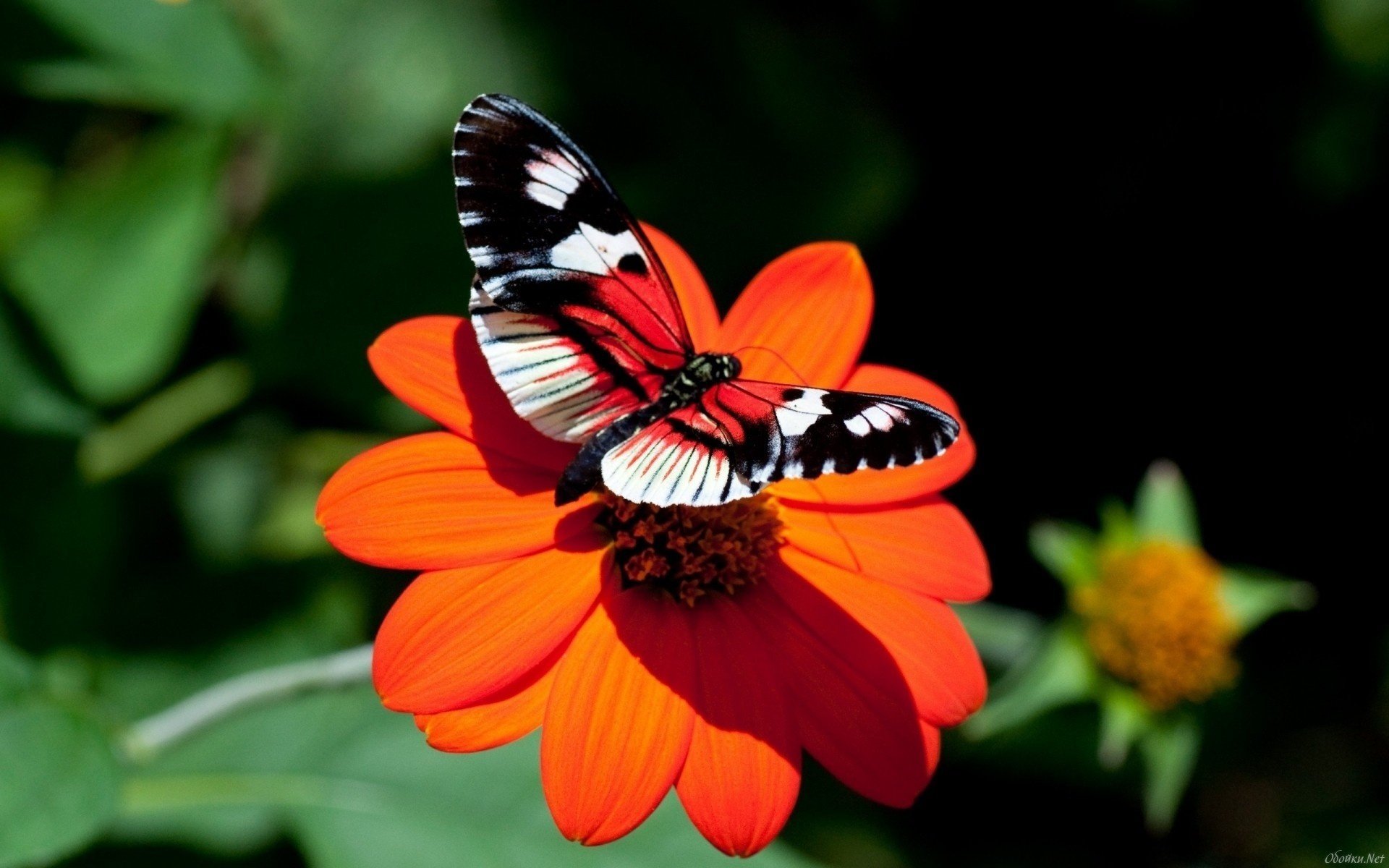 Gros plan d'un papillon assis sur une fleur et regardant directement dans la caméraGros plan d'un papillon assis sur une fleur et regardant directement dans la caméra
