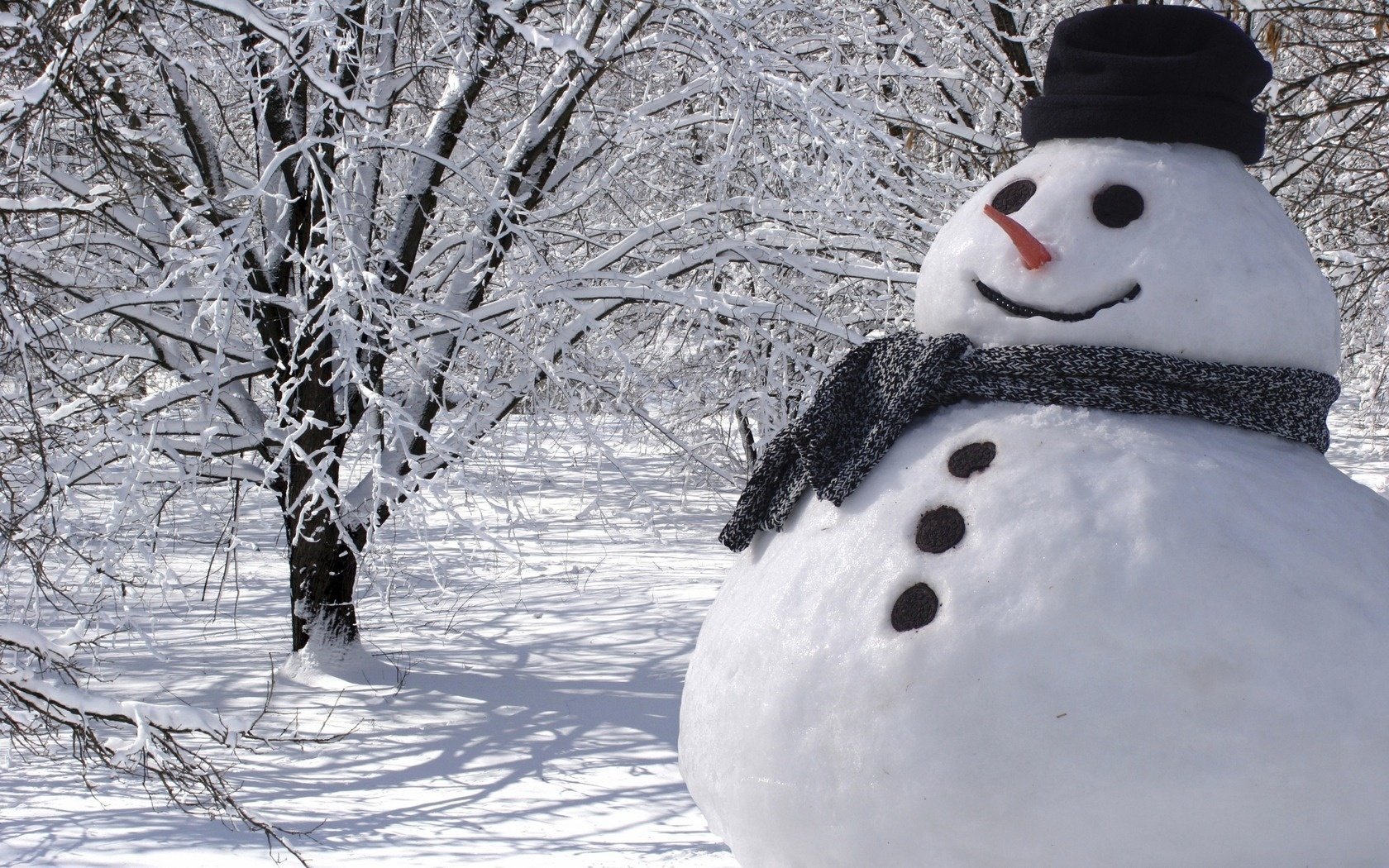 Bonhomme de neige dans la forêt avec écharpe noireBonhomme de neige dans la forêt avec écharpe noire