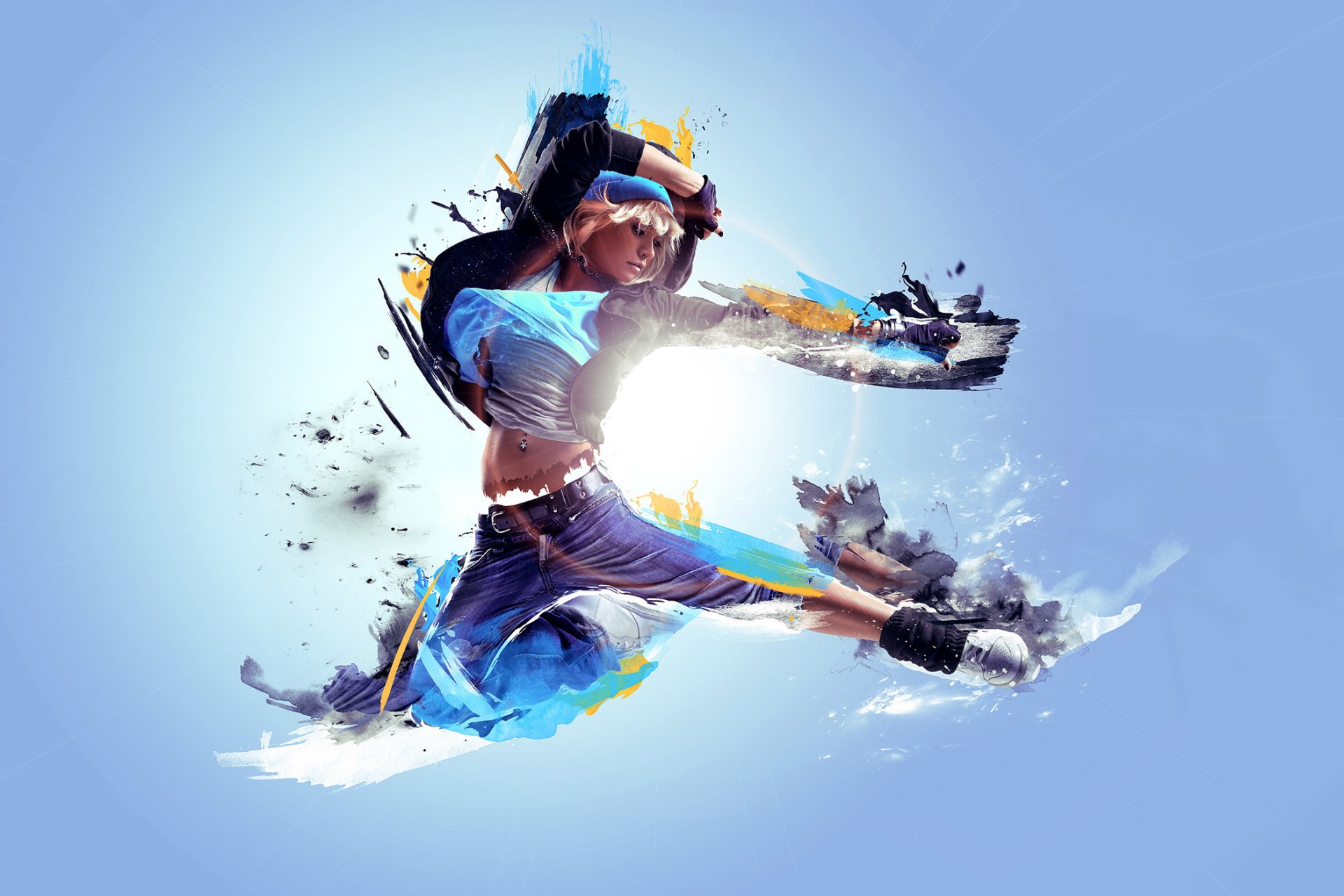 Fille aux cheveux roux dans la danse passionnément fond sombre
