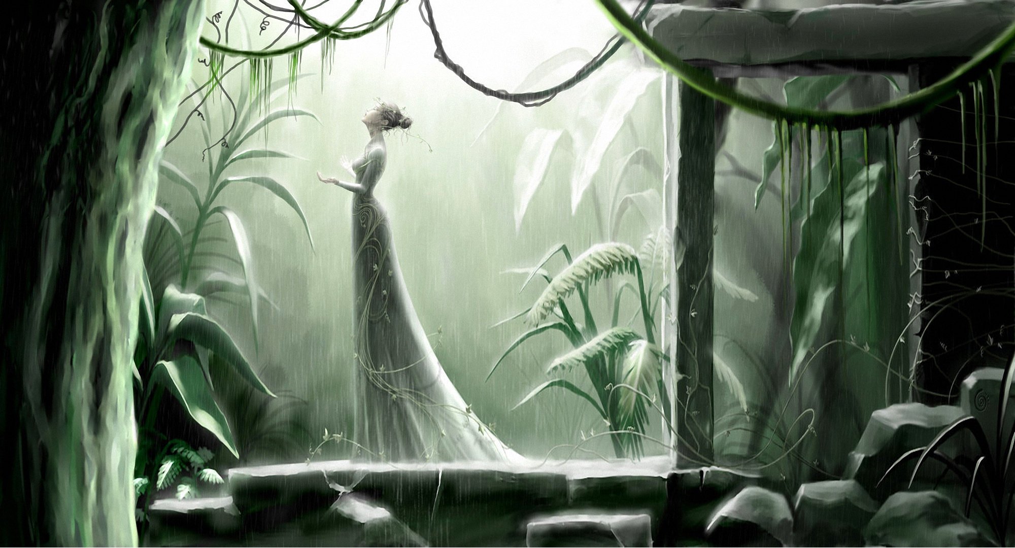 Un oiseau au plumage bleu vif est assis sur le bord d'une branche sous les gouttes de pluie