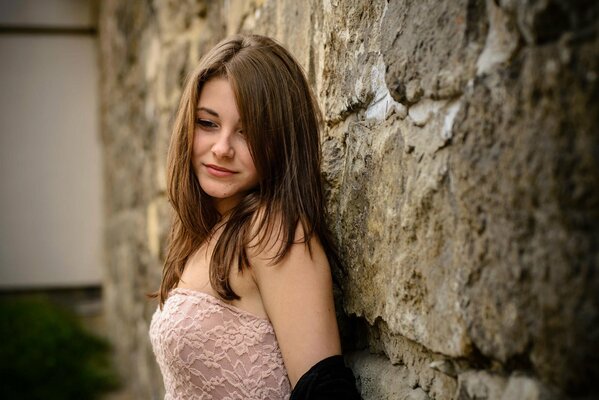 Photo de la jeune fille près du mur