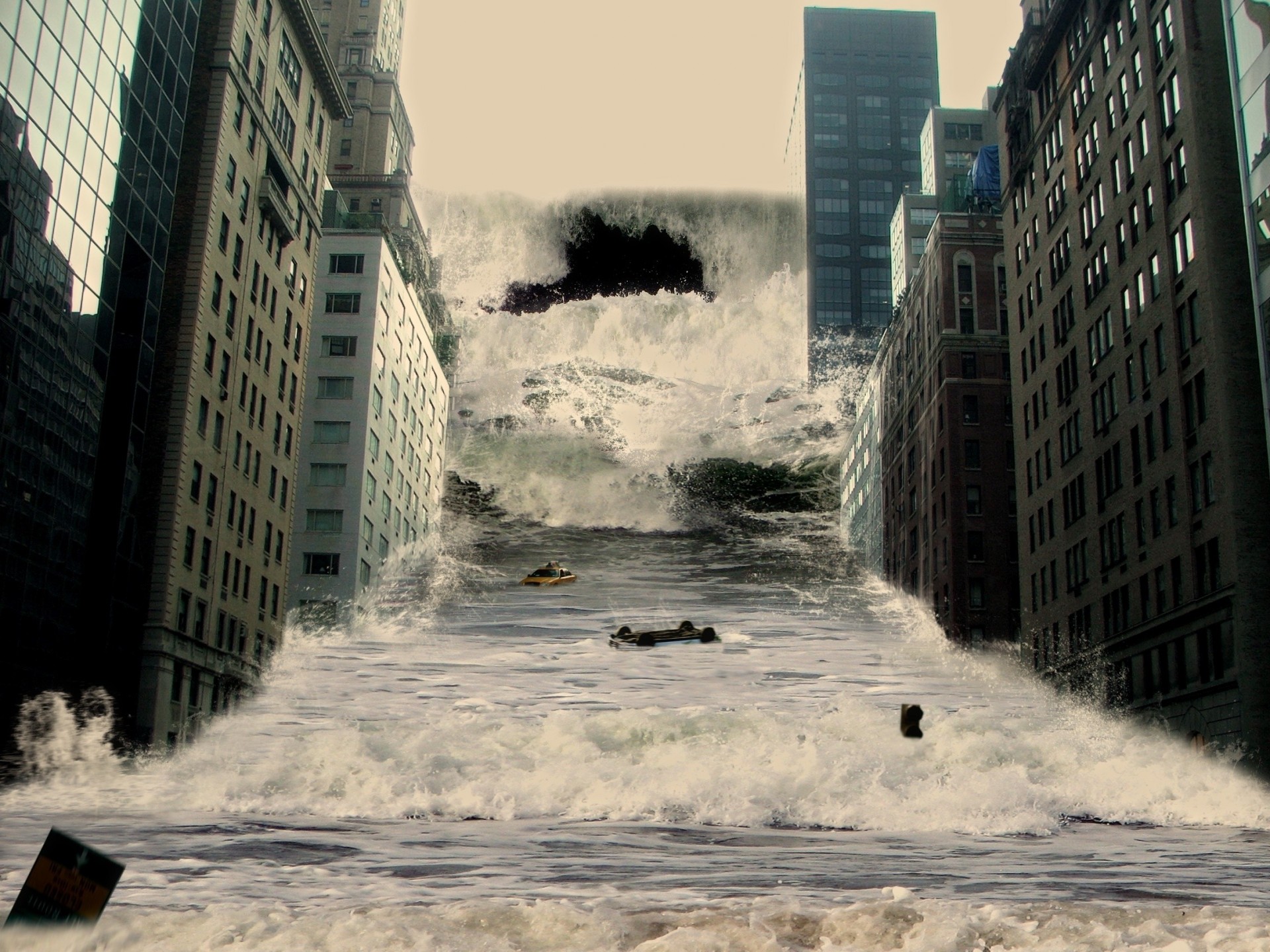 Catastrophe dans la ville. Une inondation détruit des gratte-ciel de verre