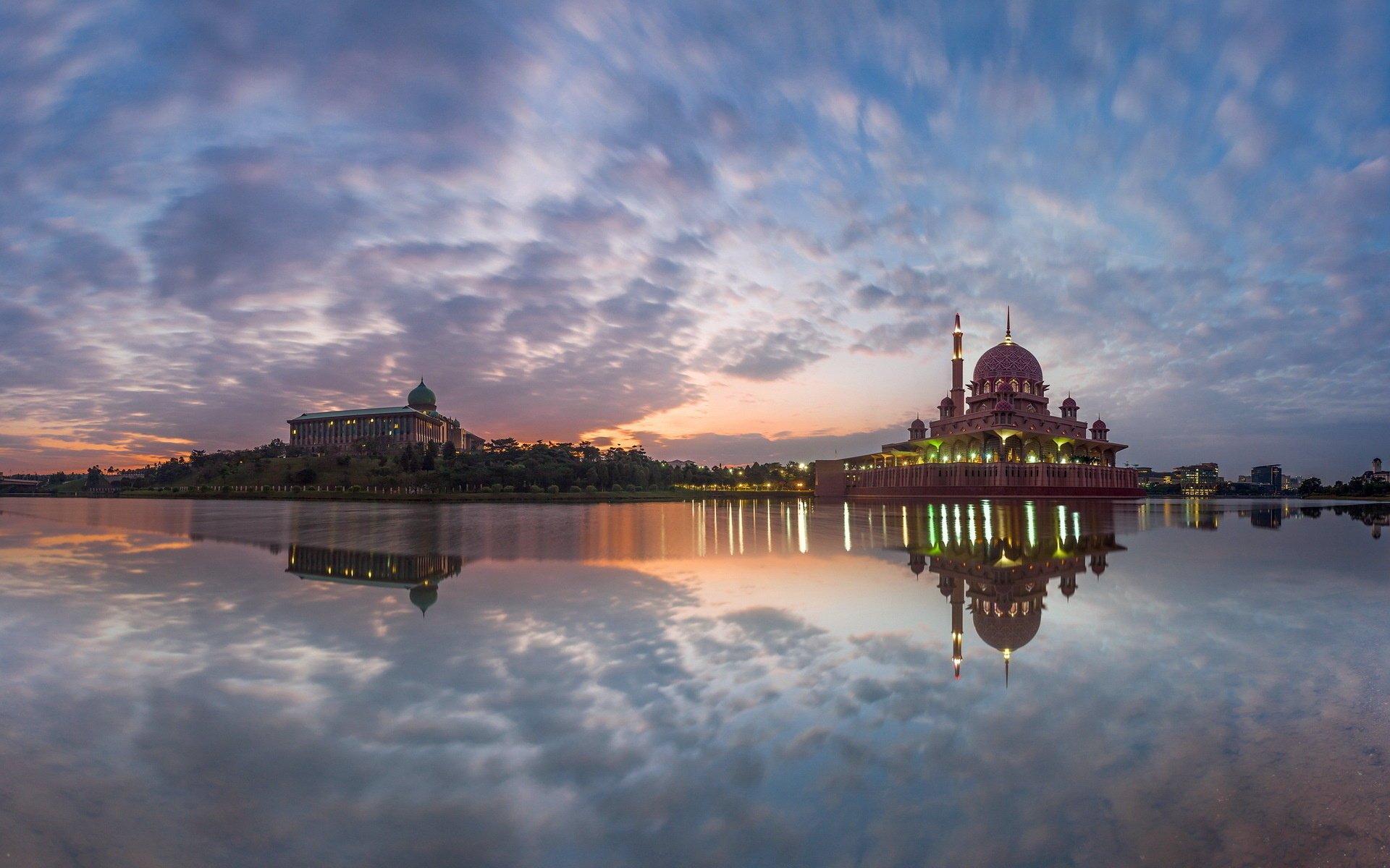 Reflet des flancs dans l'eau au coucher du soleil dans la ville