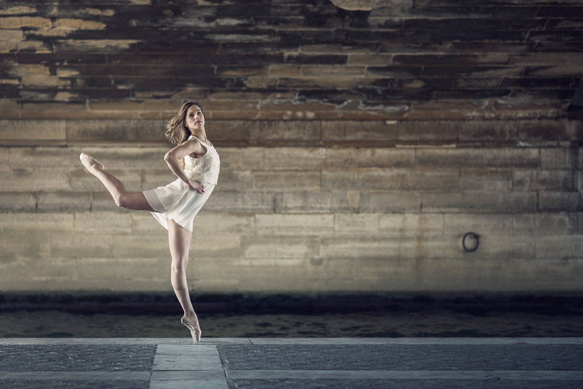 Une fille de ballerine assise près d'un arbre, le met sur les pointesUne fille de ballerine assise près d'un arbre, le met sur les pointes