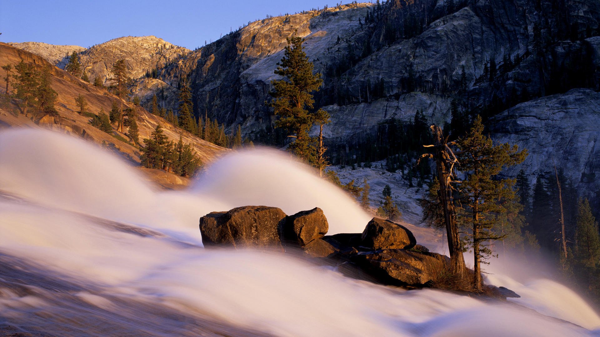 Les troncs d'arbres se reflètent dans la surface de l'eau