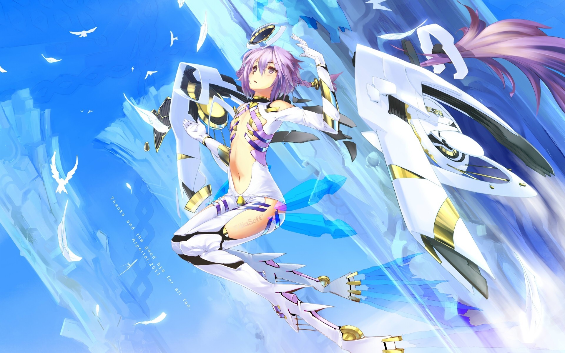 Personnage d'anime fille avec des ailes sur fond de lunePersonnage d'anime fille avec des ailes sur fond de lune