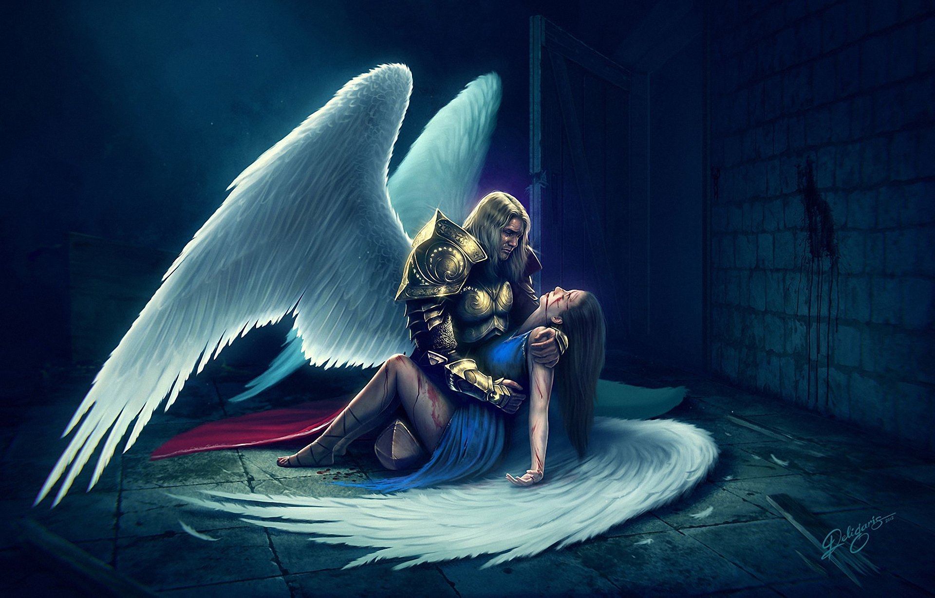 Art d'un gars avec des ailes tenant une fille avec des ailesArt d'un gars avec des ailes tenant une fille avec des ailes