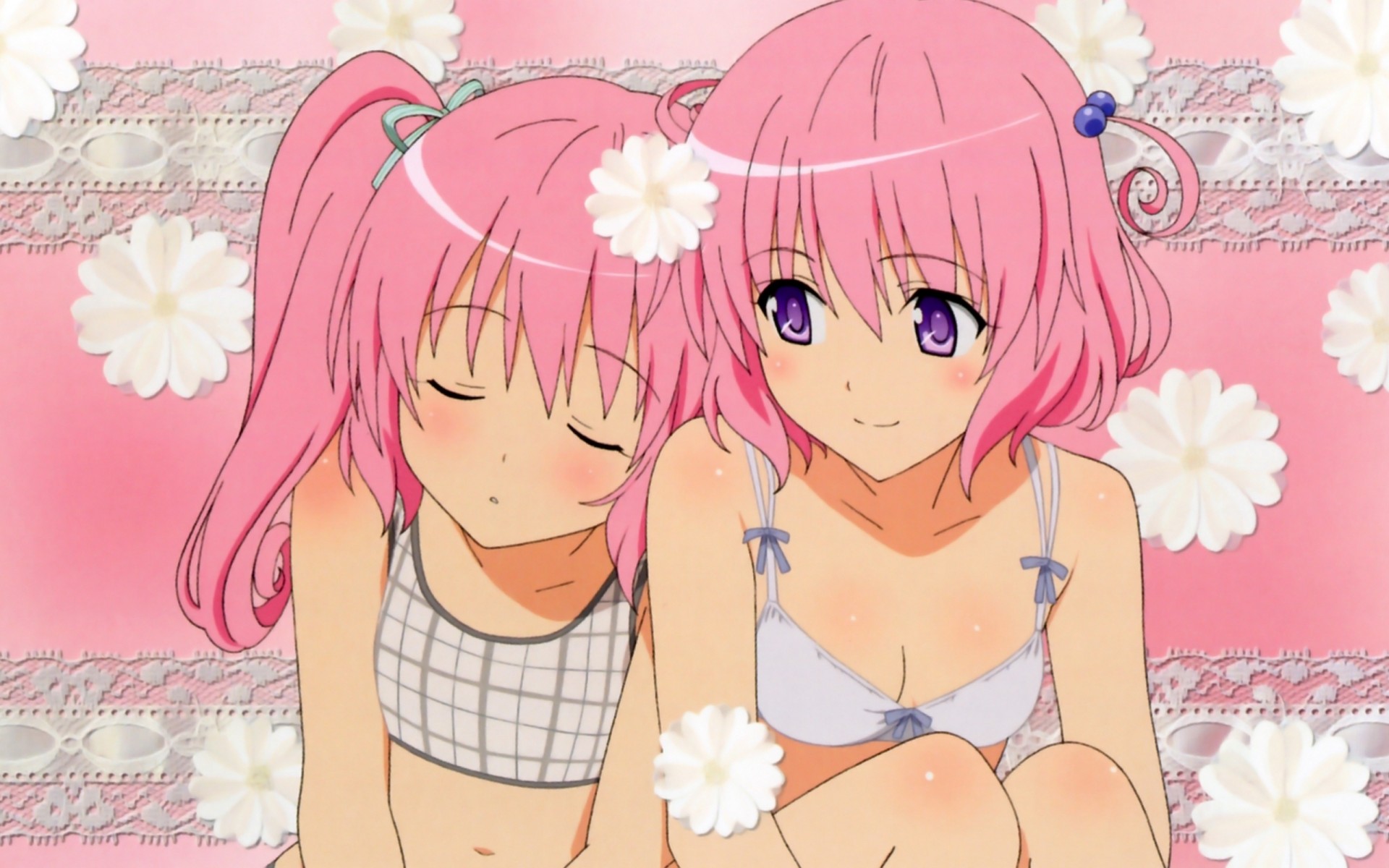 Anime fille avec des cheveux roses et en soutien-gorgeAnime fille avec des cheveux roses et en soutien-gorge