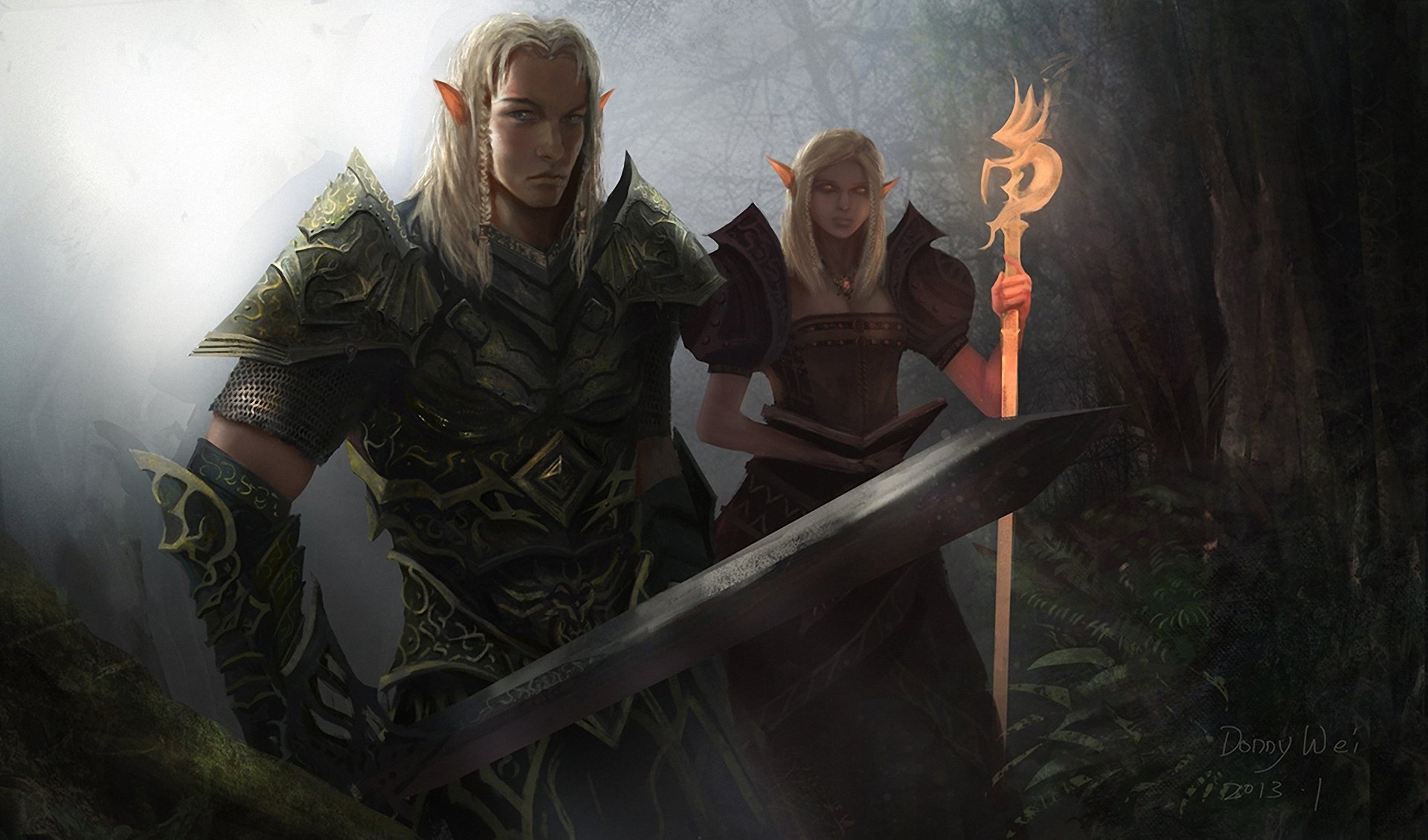 Elfes d'art avec des armes dans la forêt
