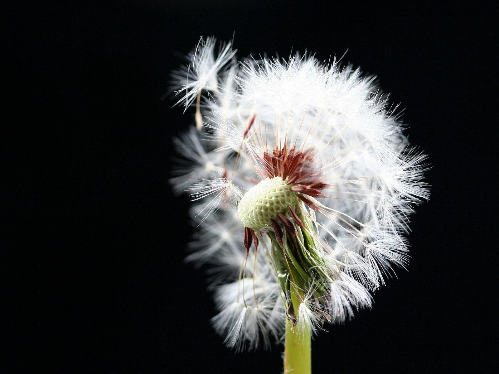 Pissenlit volant sur fond noir