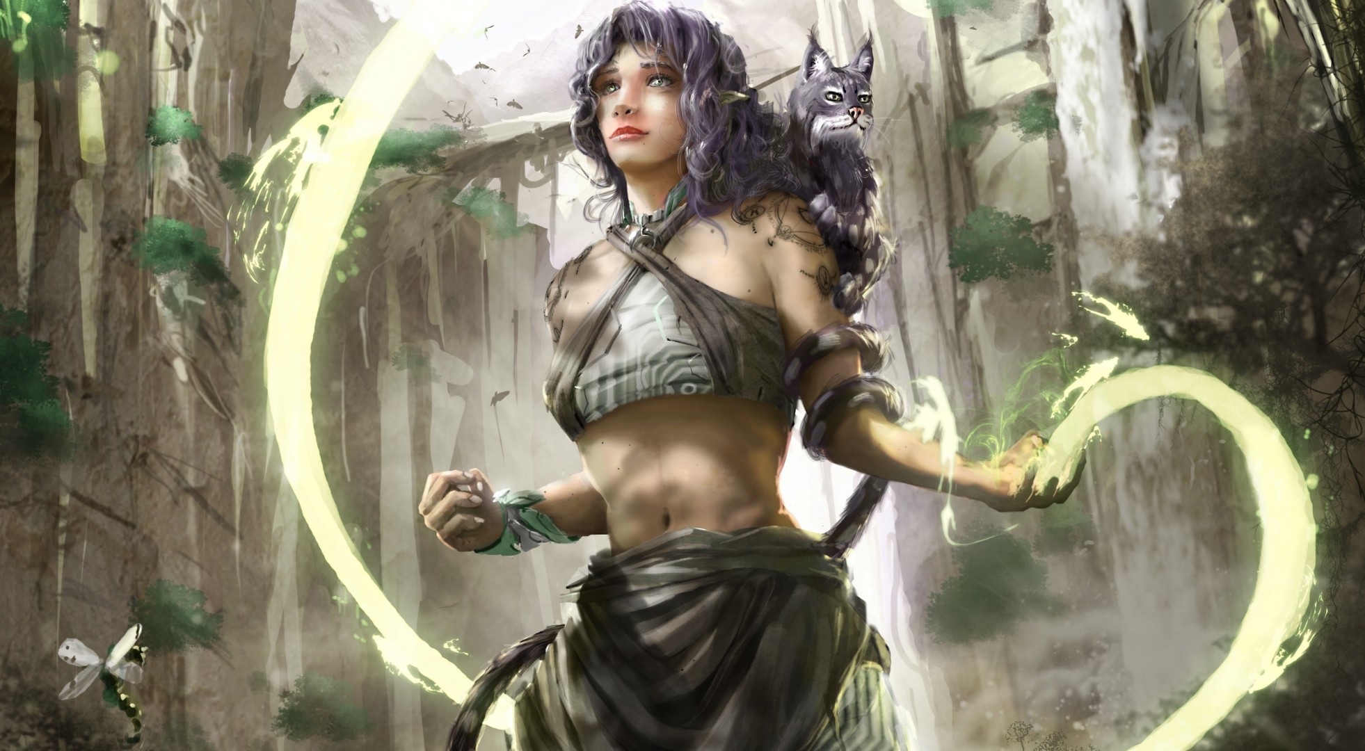Fille elfe et oiseau vert
