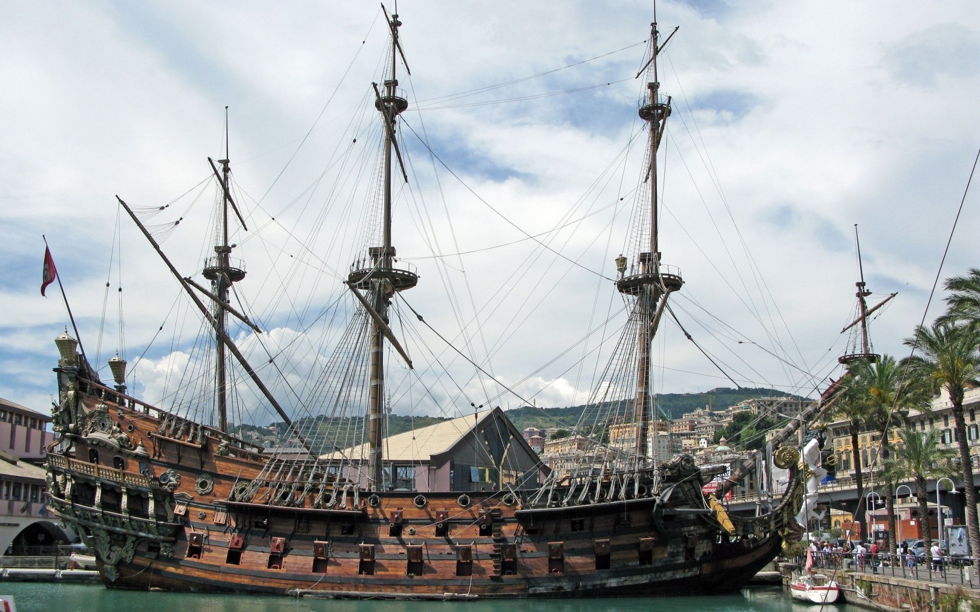 Navire en mer avec des voiles vertes