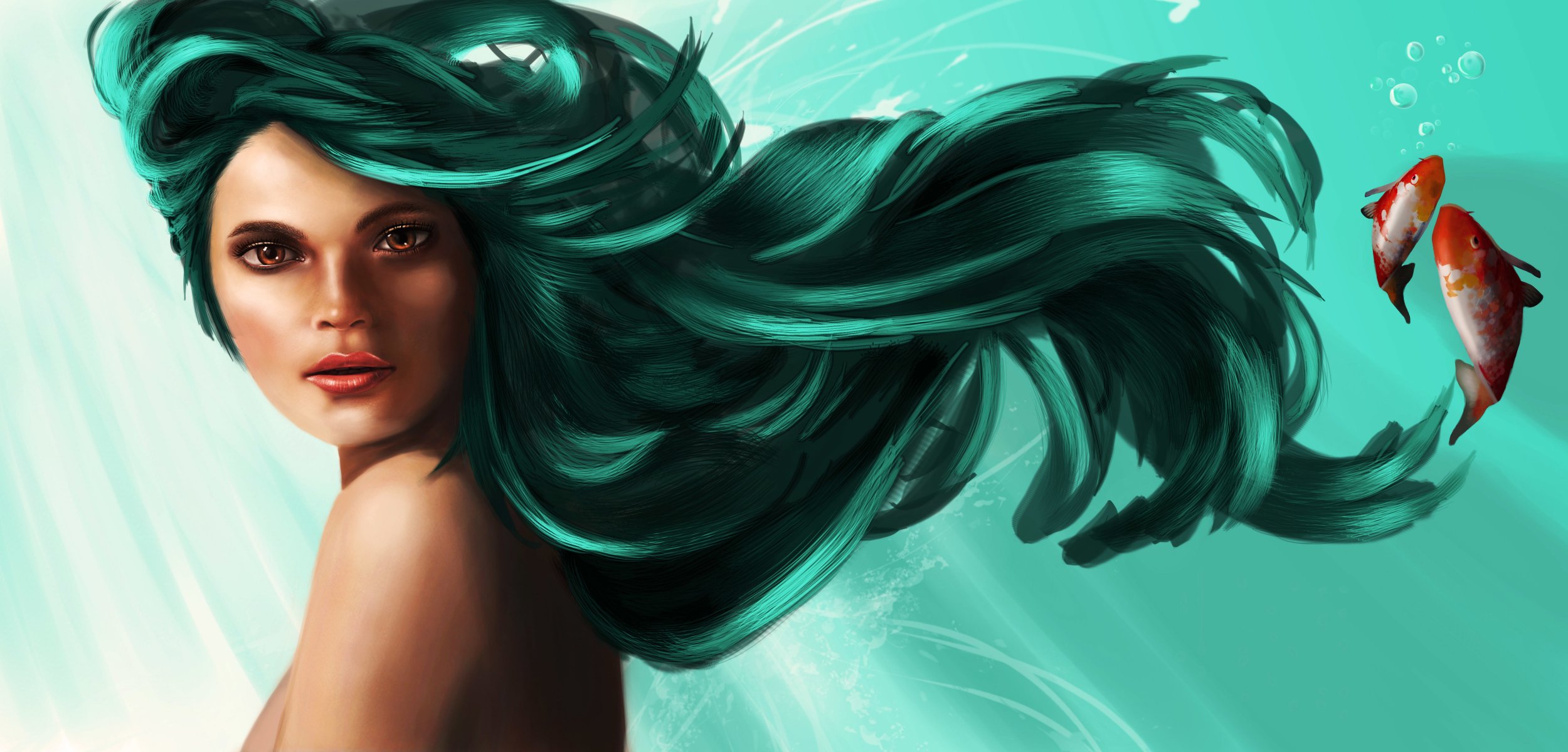 Sous l'eau fille aux cheveux verts