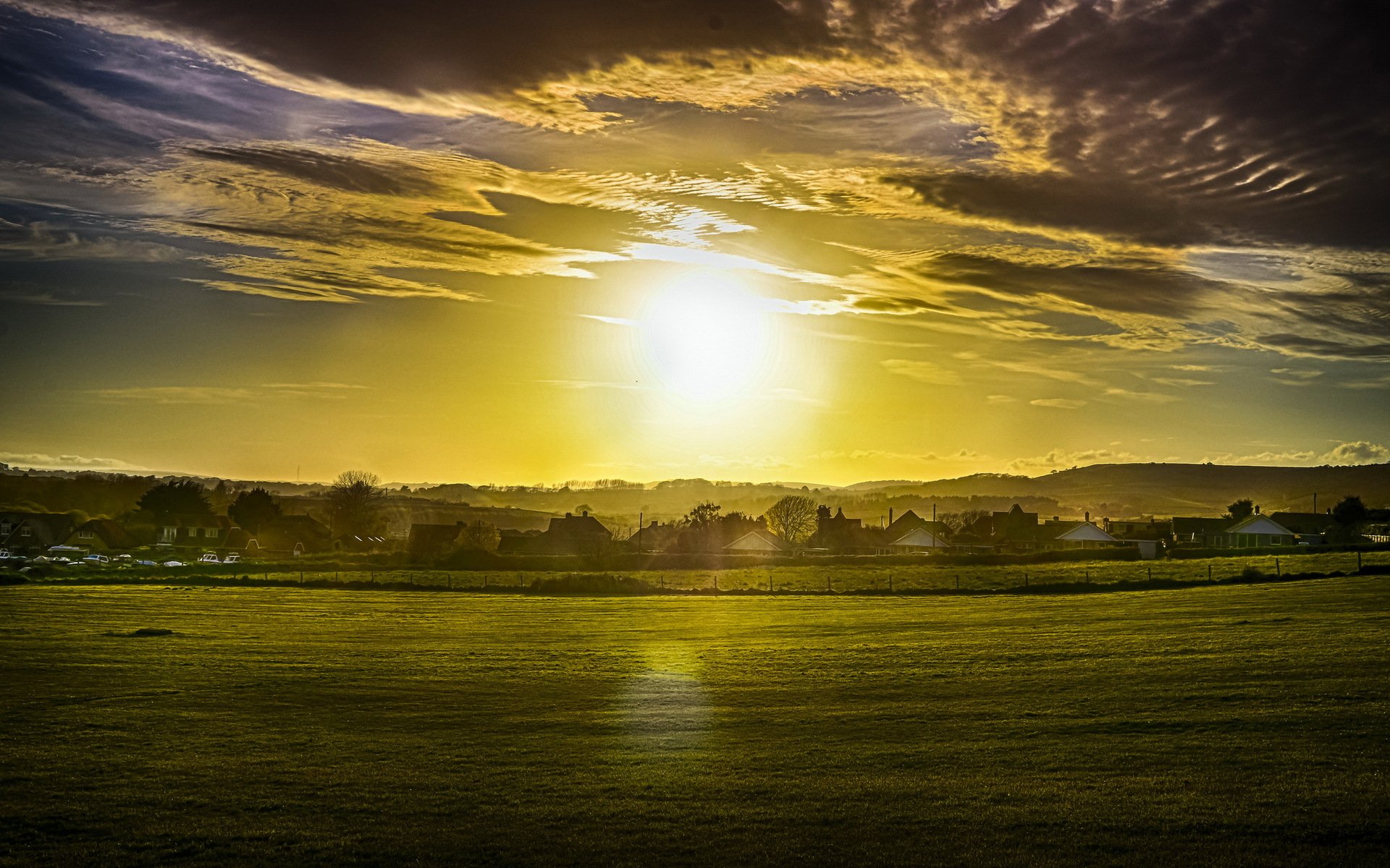 Nuages en couches et le soleil au coucher du soleilNuages en couches et le soleil au coucher du soleil
