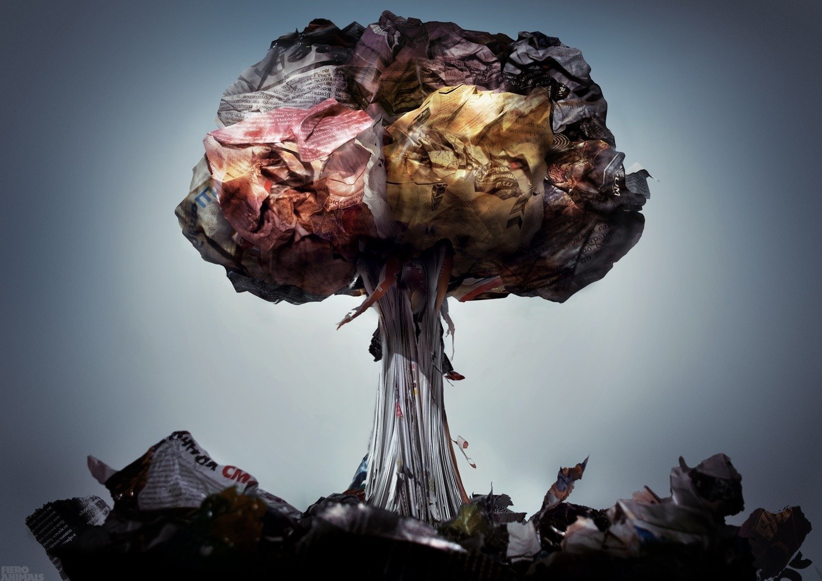 Explosion au milieu de l'île avec des palmiers du jeu crysisExplosion au milieu de l'île avec des palmiers du jeu crysis