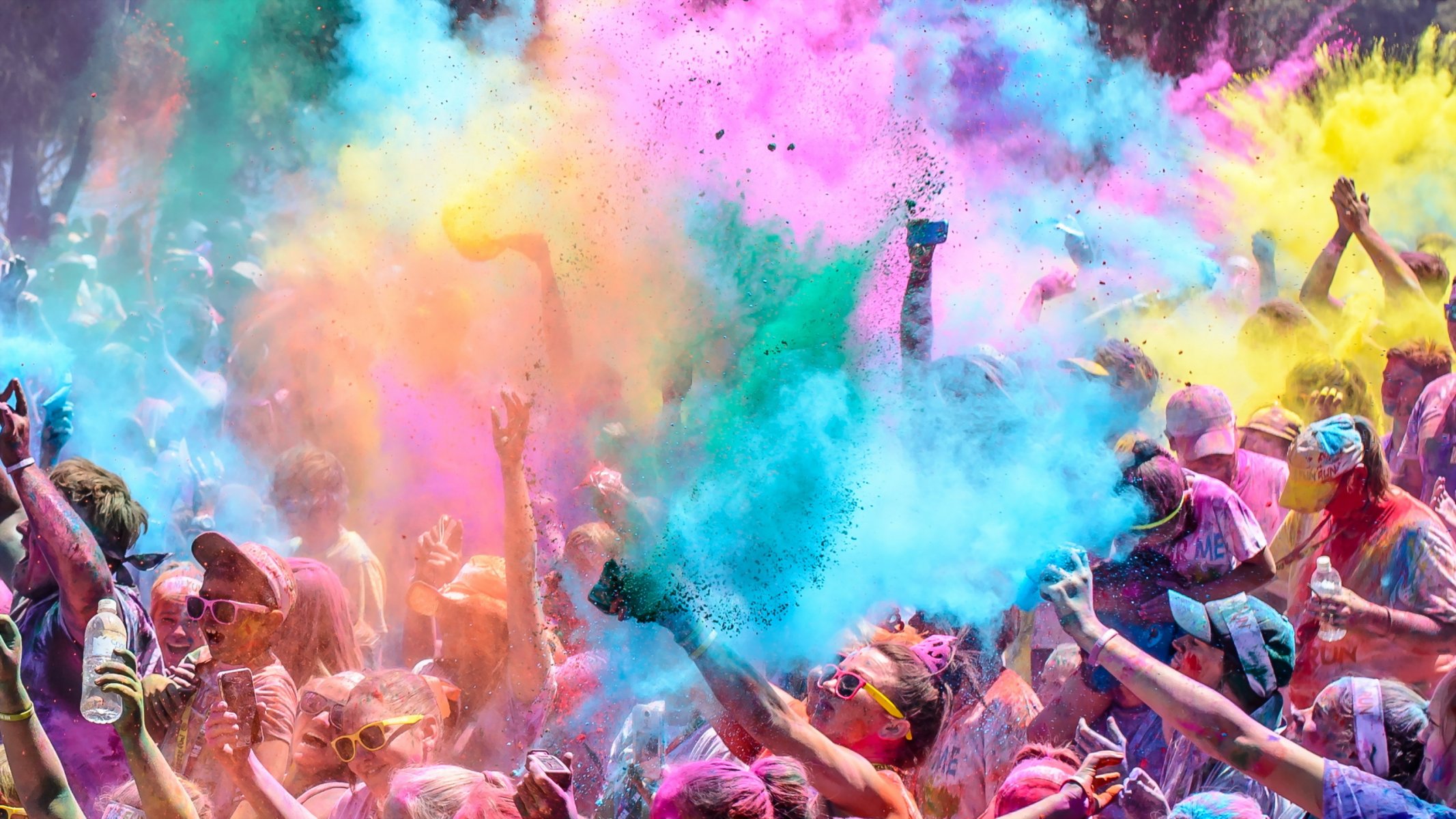 Poudre de teinture multicolore sur la foule