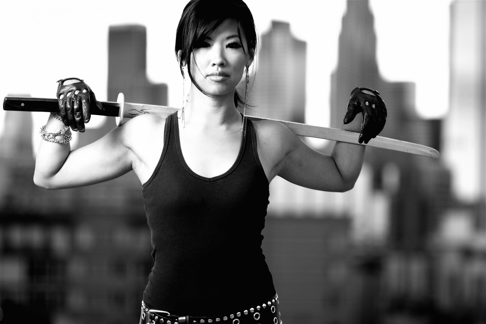 Fille avec un tatouage avec une épée dans les mainsFille avec un tatouage avec une épée dans les mains