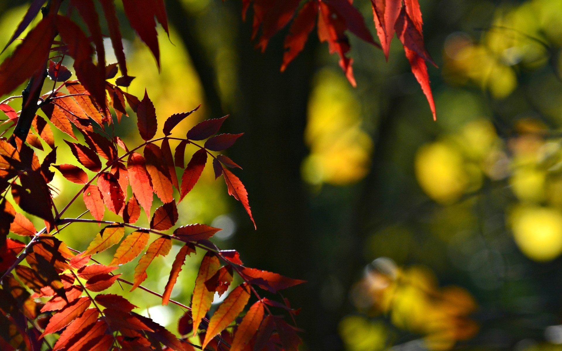 Mise au point des reflets lors de la prise de vue des feuilles d'érable rouge. effet bokehMise au point des reflets lors de la prise de vue des feuilles d'érable rouge. Effet bokeh