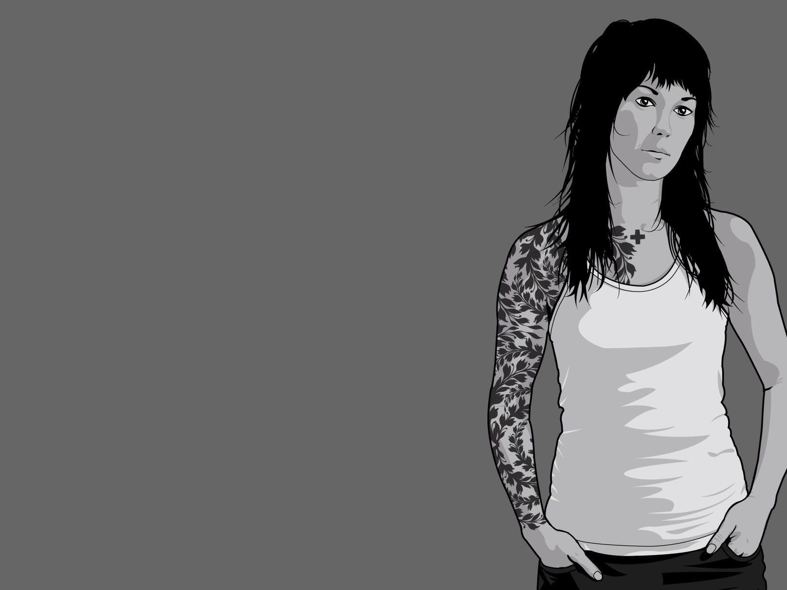 Fille avec un tatouage sur toute la main sur fond flouFille avec un tatouage sur toute la main sur fond flou