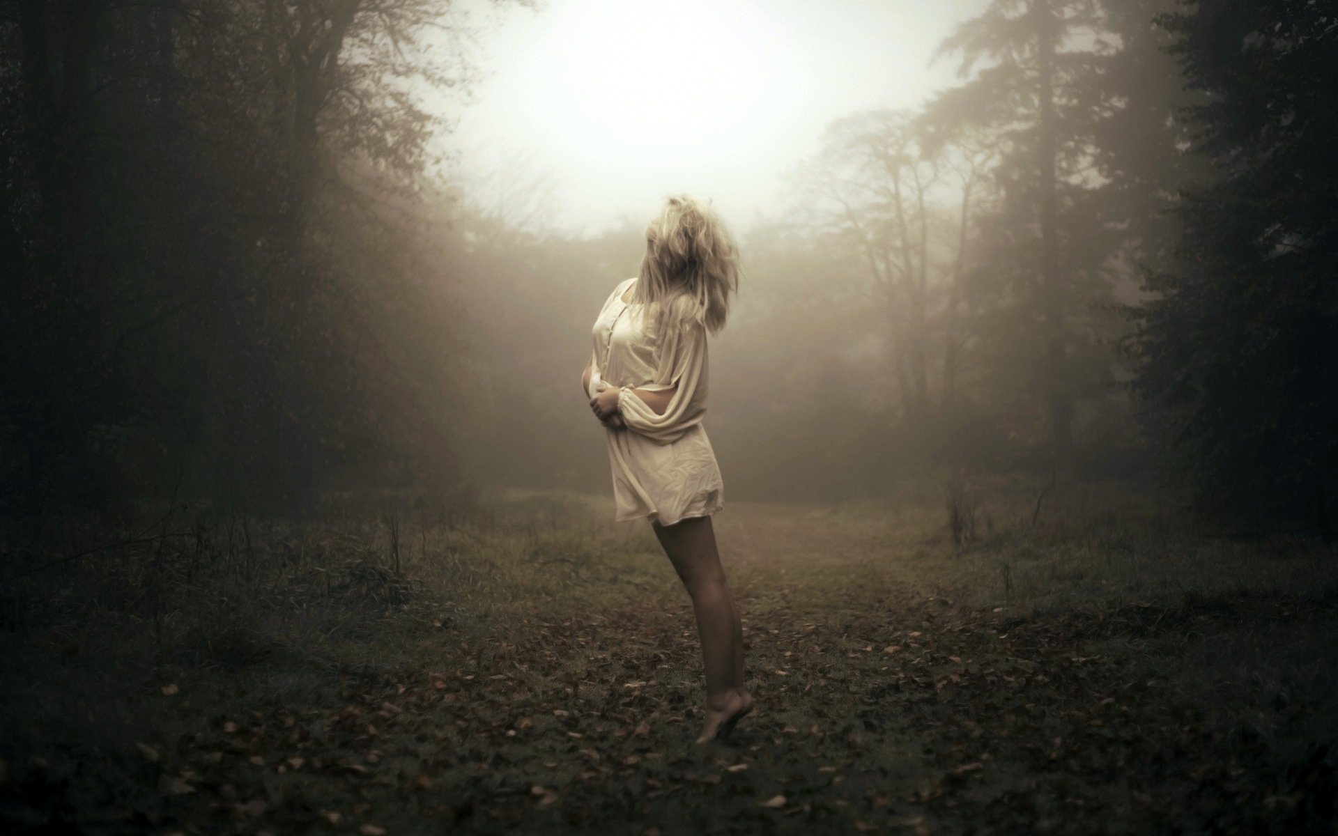La jeune fille va une de пыстынной la route pieds nusLa jeune fille va une de пыстынной la route pieds nus