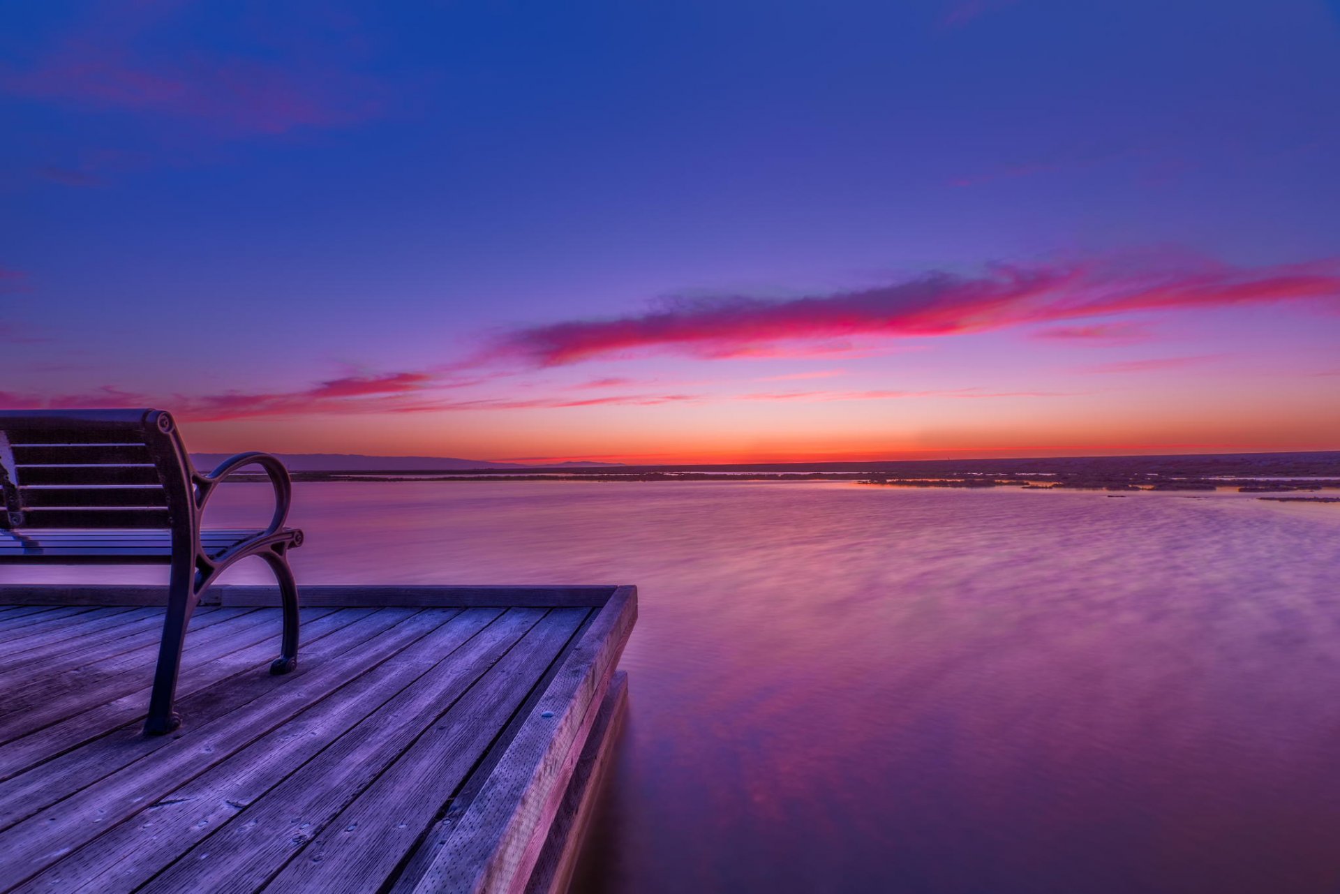 Collines couvertes de verdure et de la surface bleue de l'eau sur fond de ciel bleu azurCollines couvertes de verdure et de la surface bleue de l'eau sur fond de ciel bleu Azur