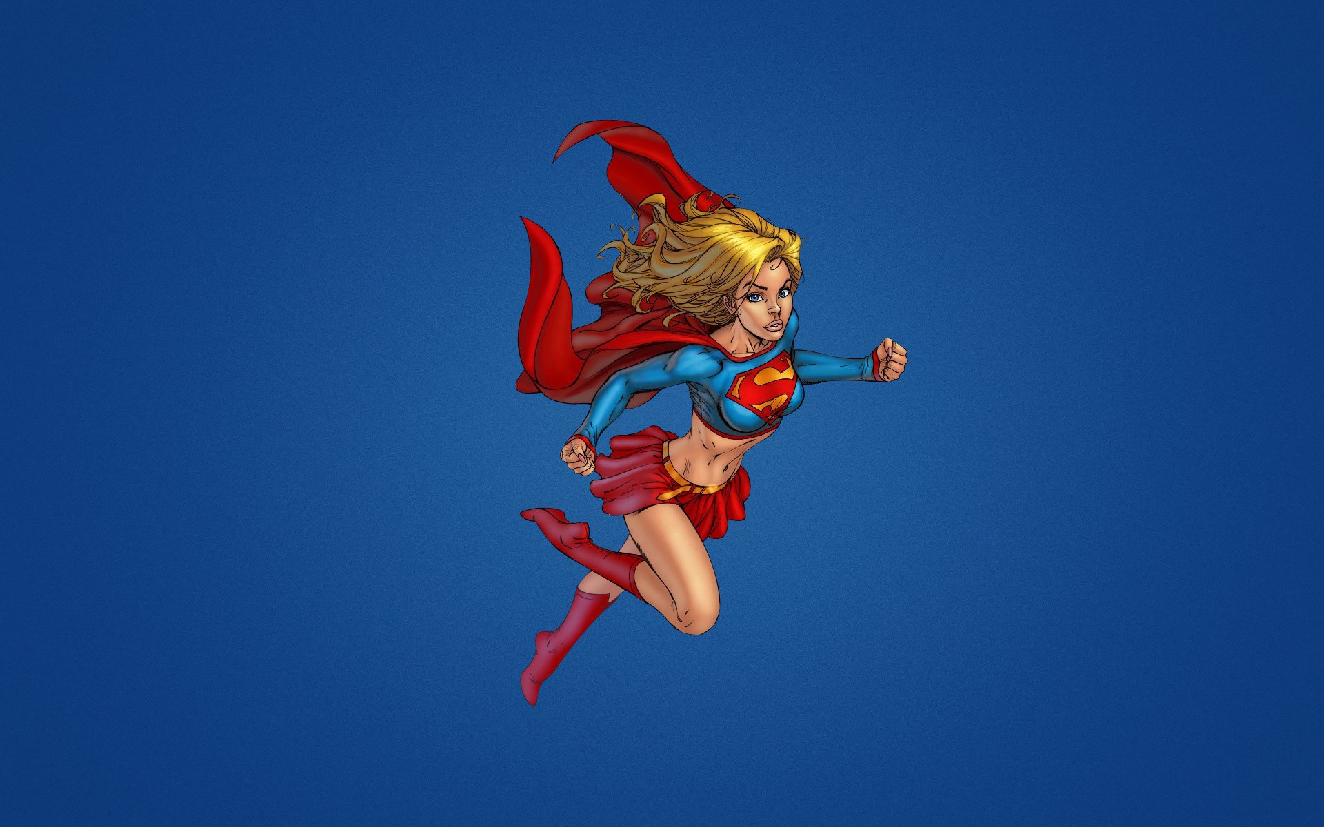 Superdevushka vole sur fond bleu