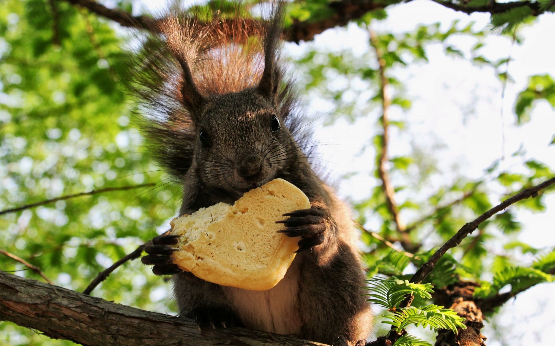 Écureuil sur l'arbre avec des biscuits en forme de coeur