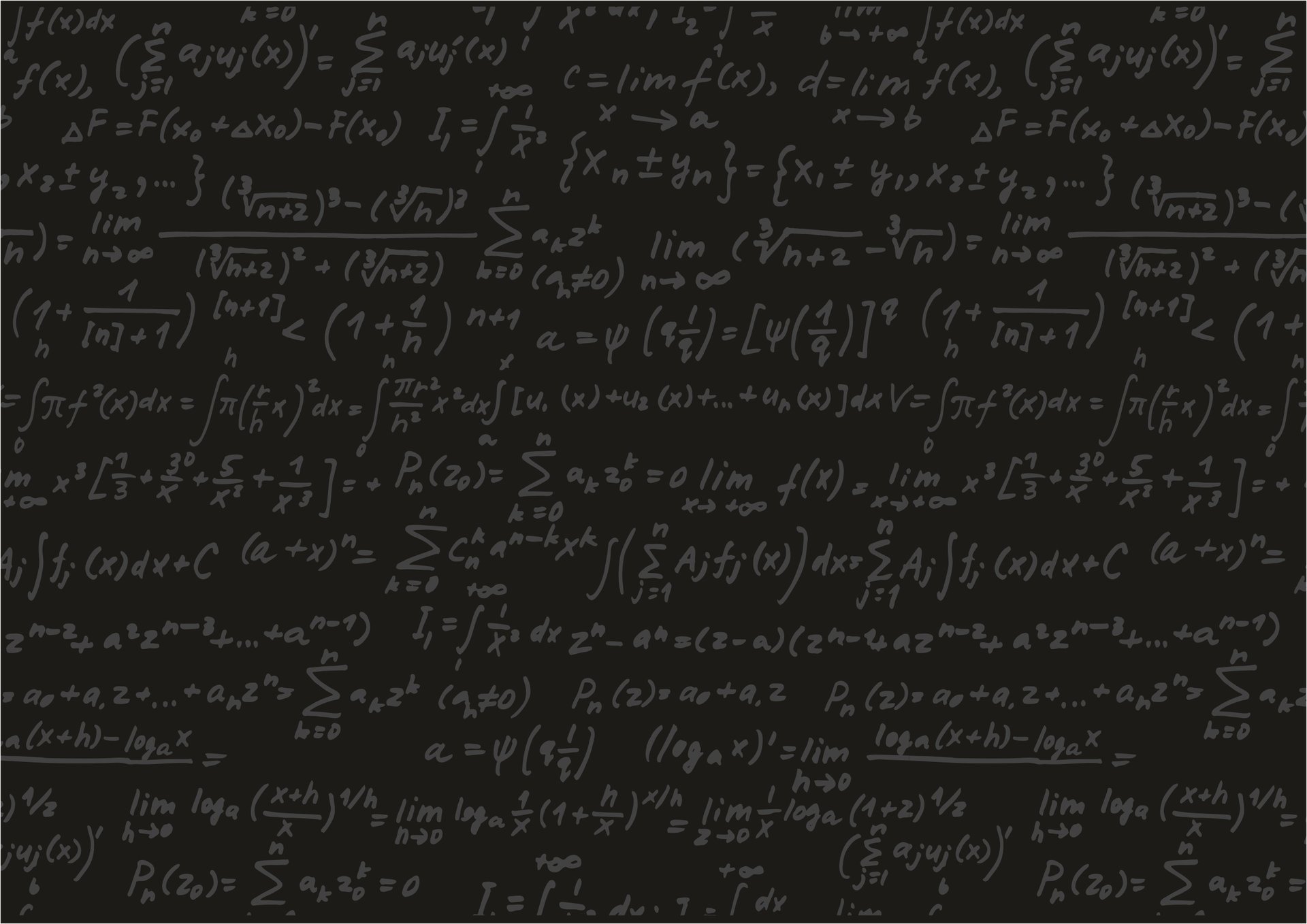Sur un tableau gris foncé, de nombreuses formules mathématiques sont écrites à la craieSur un tableau gris foncé, de nombreuses formules Mathématiques sont écrites à la craie