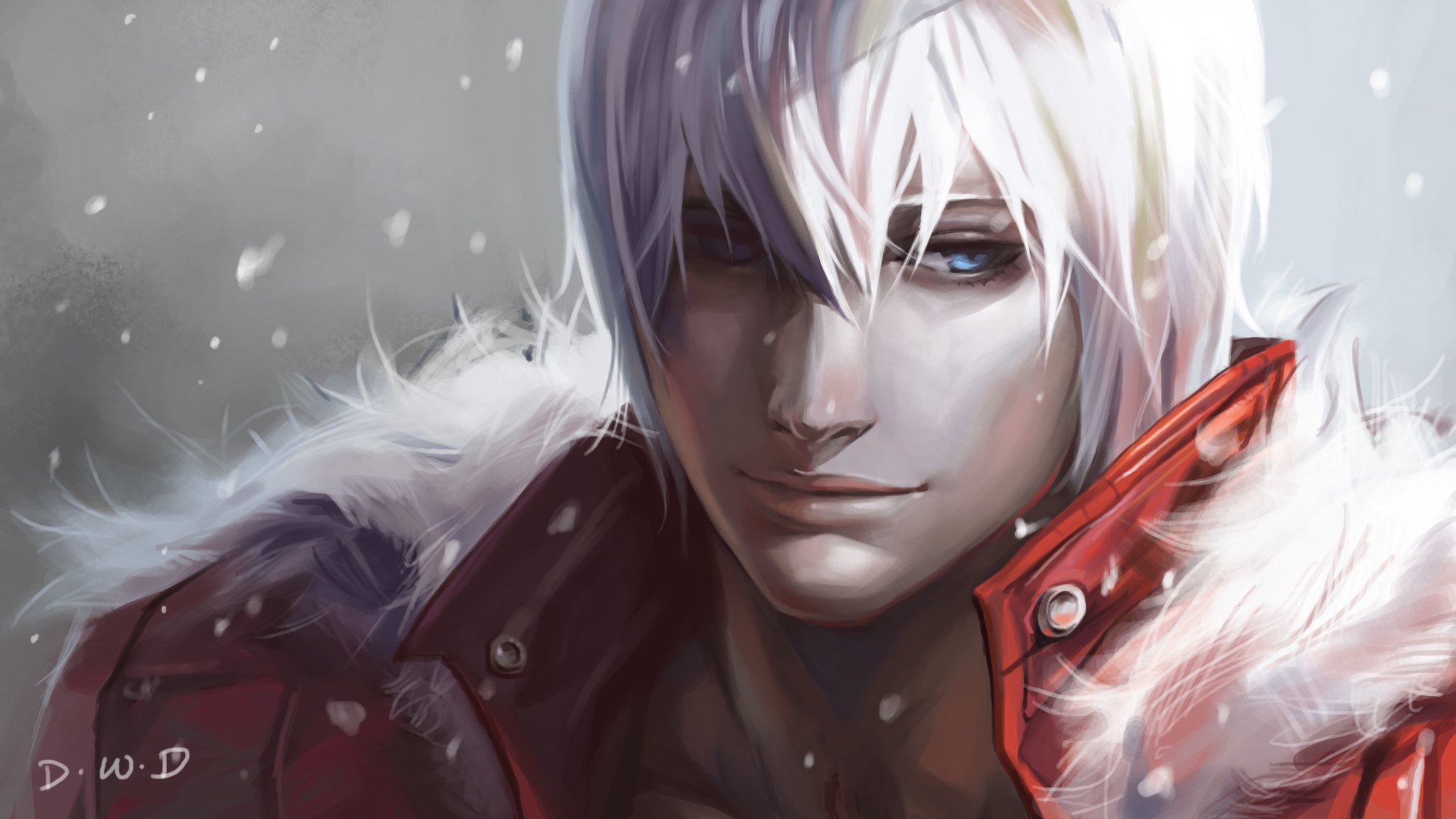 Fille avec des cheveux verts dans une capuche blanche en hiver