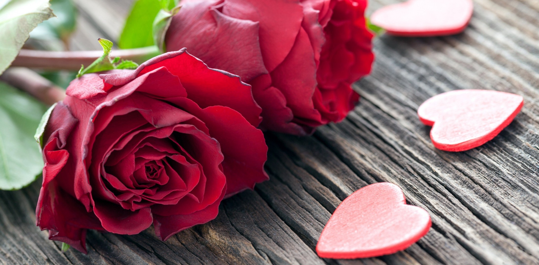 Cadre photo sur fond de boîte-cadeau et bouquet de roses écarlates