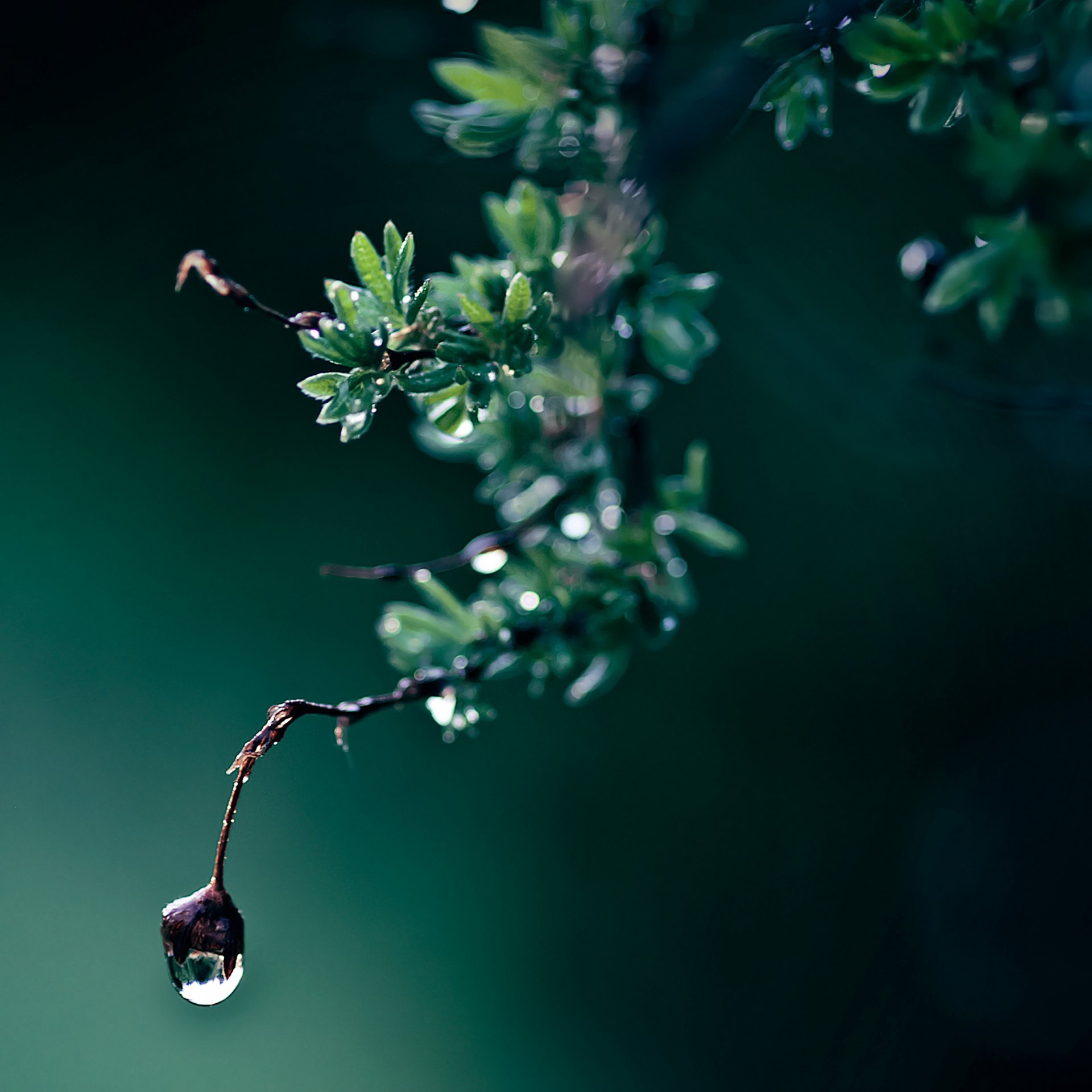 Branche avec des feuilles et une goutte d'eau
