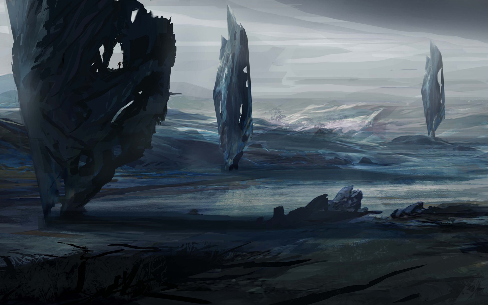 Dessin d'une friche avec des pierres géantes