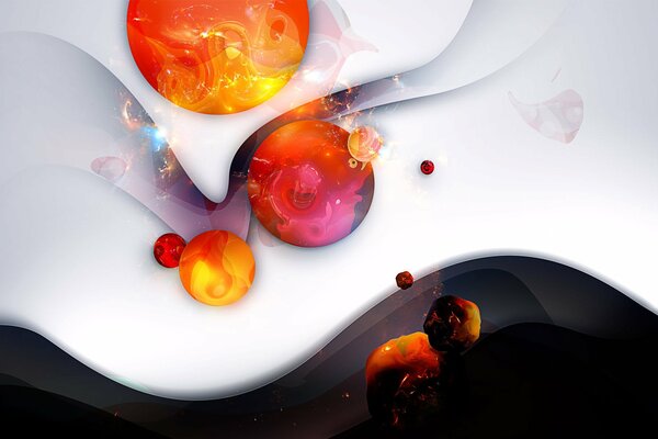 Sphères nervurées sur un fond sombre avec des anneaux et de la lumièreSphères nervurées sur un fond sombre avec des anneaux et de la lumière