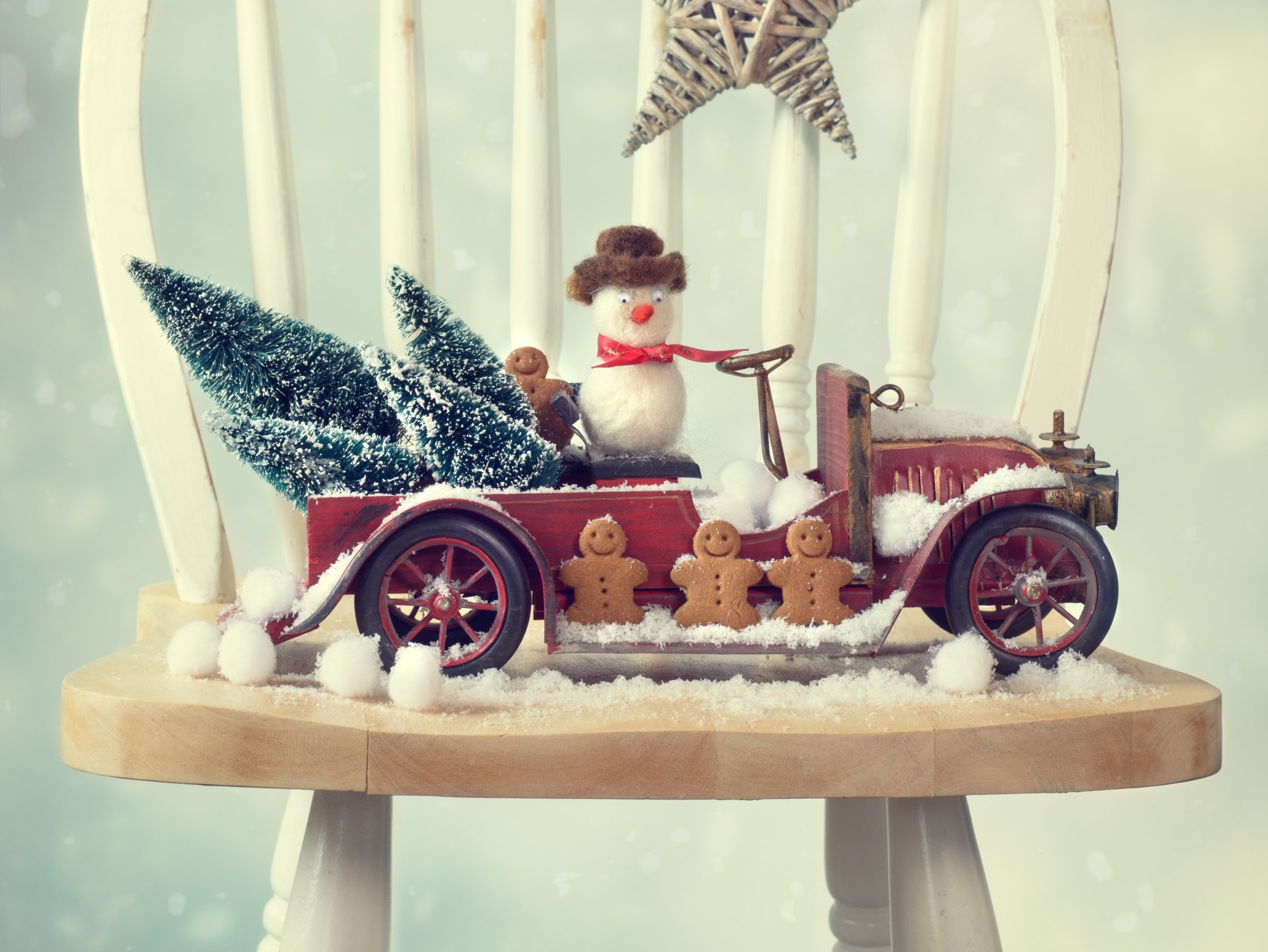 Pain d'épice décoré avec des bonhommes de neige qui monte en voiturePain d'épice décoré avec des bonhommes de neige qui Monte en voiture