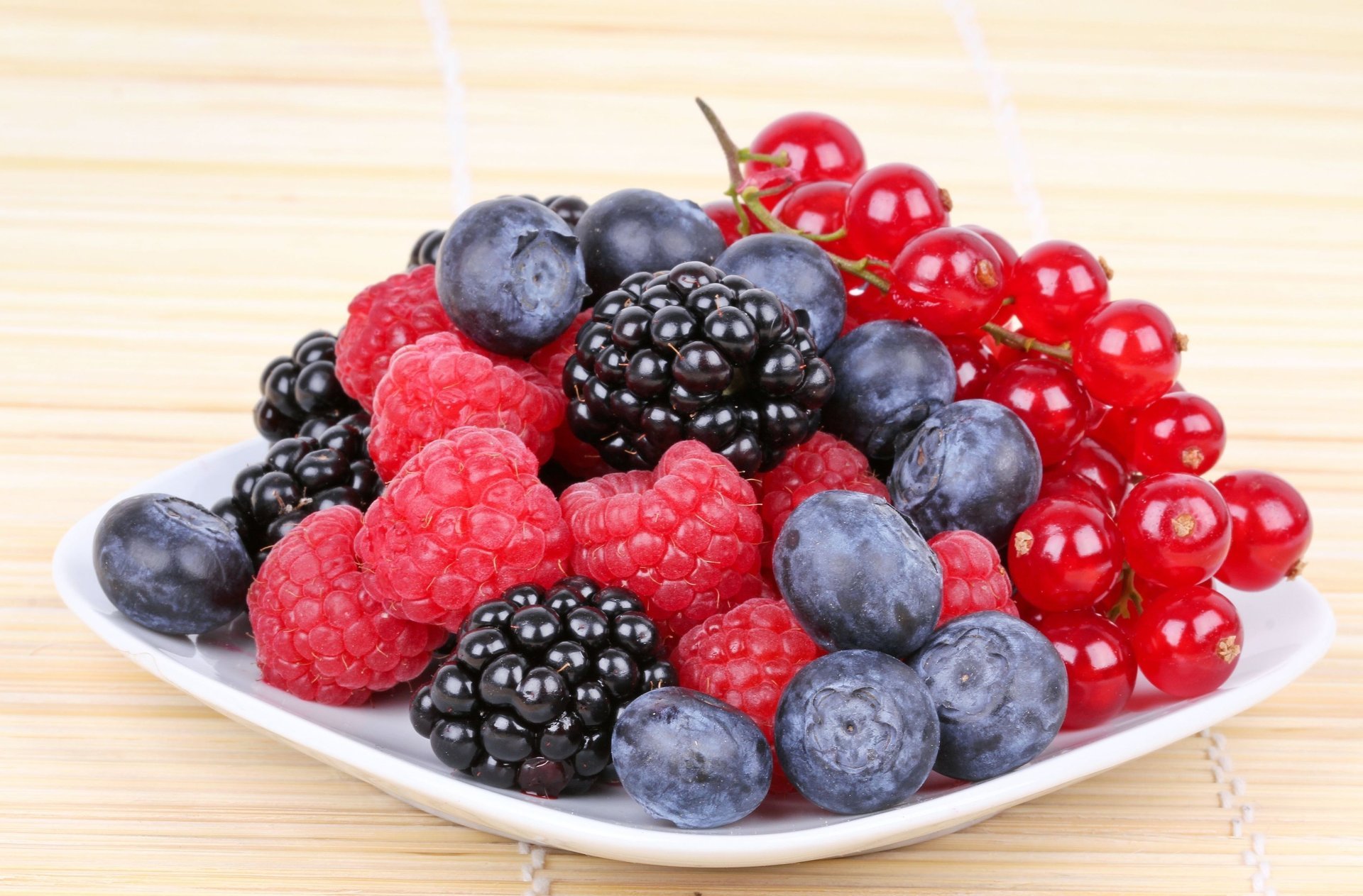 Assiette de baies aux groseilles, mûres, framboises et bleuetsAssiette de baies aux groseilles, mûres, framboises et bleuets
