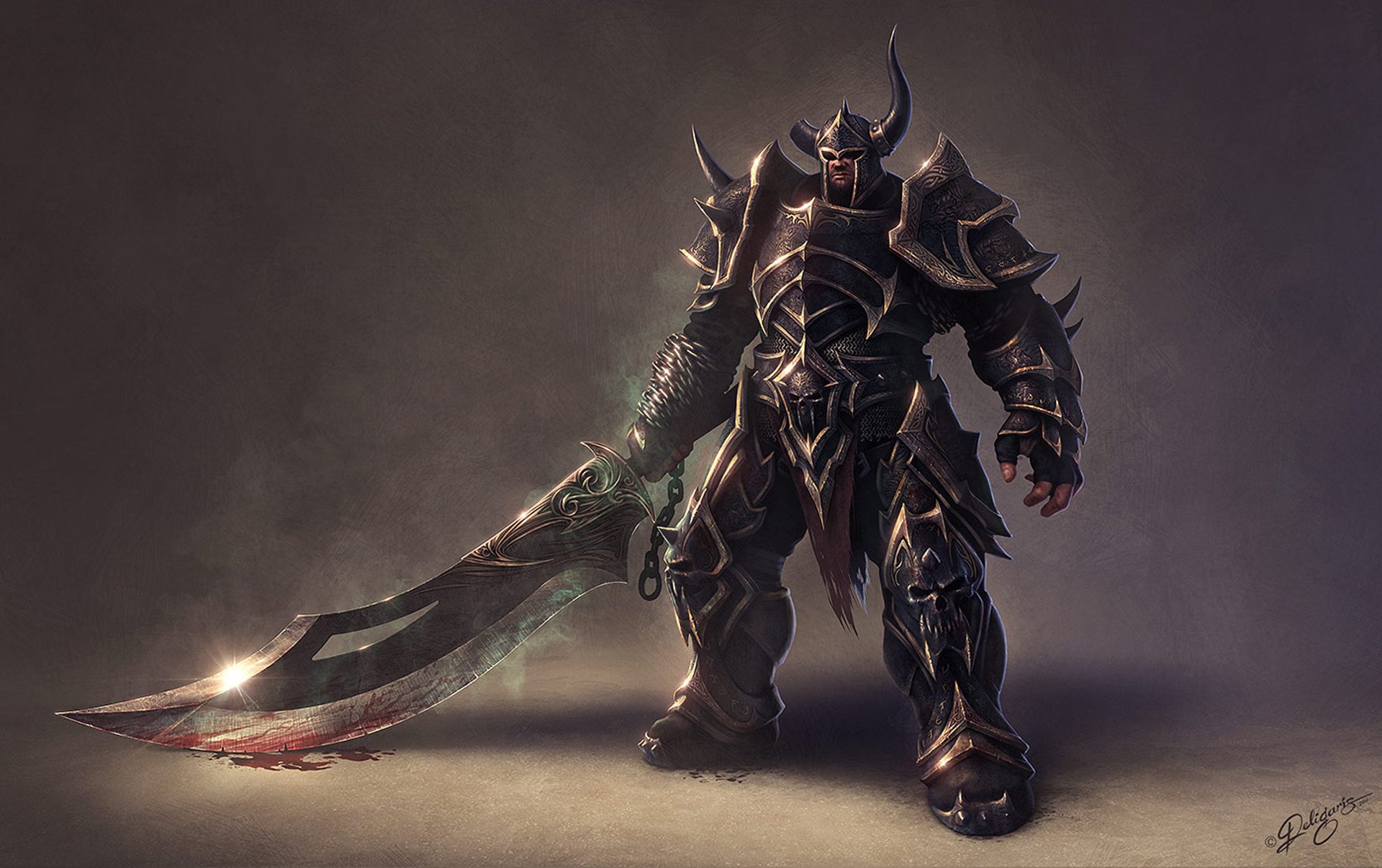 Le démon s'en prend à un guerrier. dans l'épée bat la foudreLe démon s'en prend à un guerrier. dans l'épée Bat la foudre